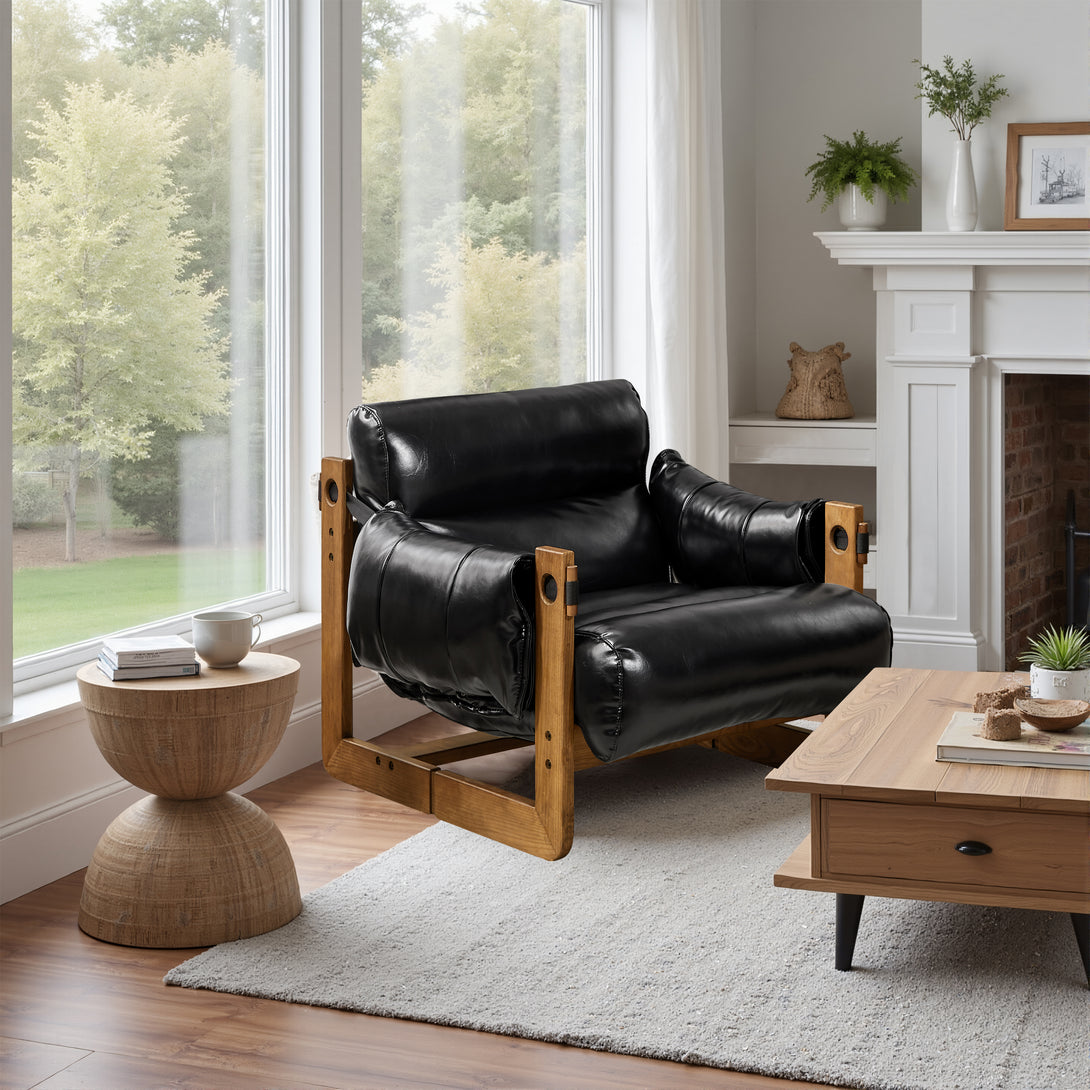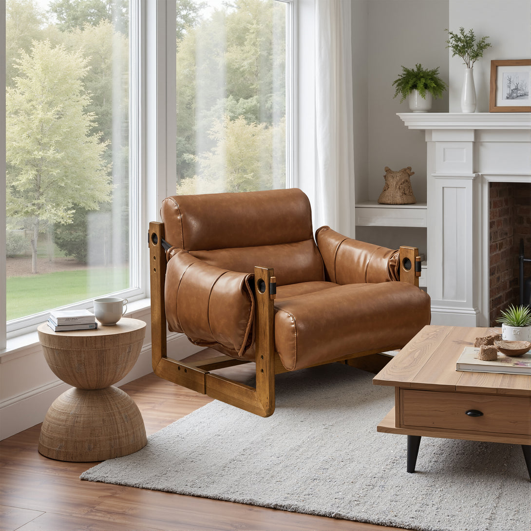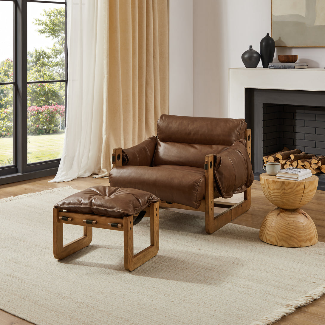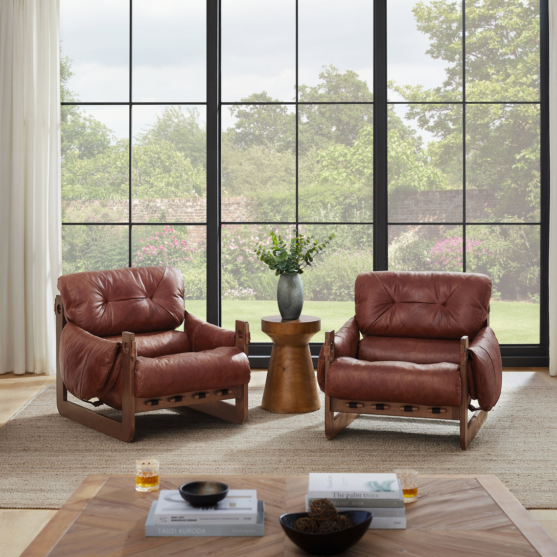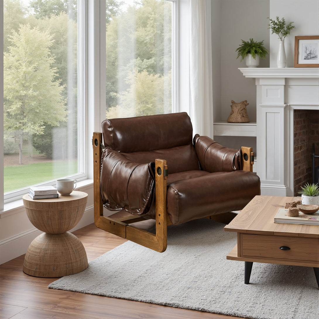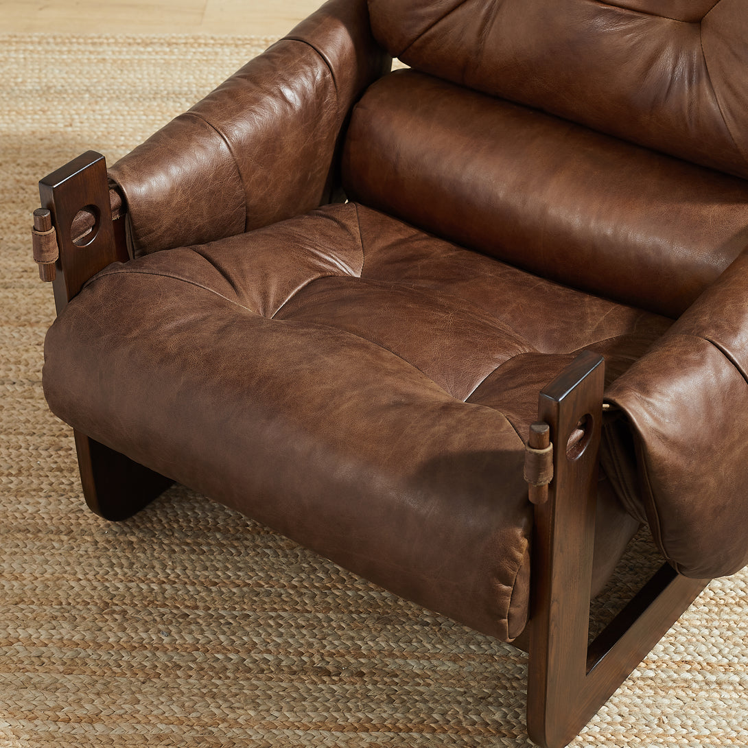 Introducing an exquisite lounge chair that combines timeless elegance with classic craftsmanship! This low-profile accent armchair is upholstered with top-grain leather, which is both breathable and delicate, and features a solid wood frame for strong support & longevity.