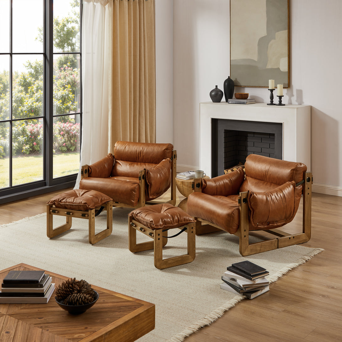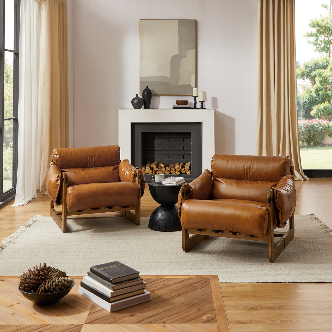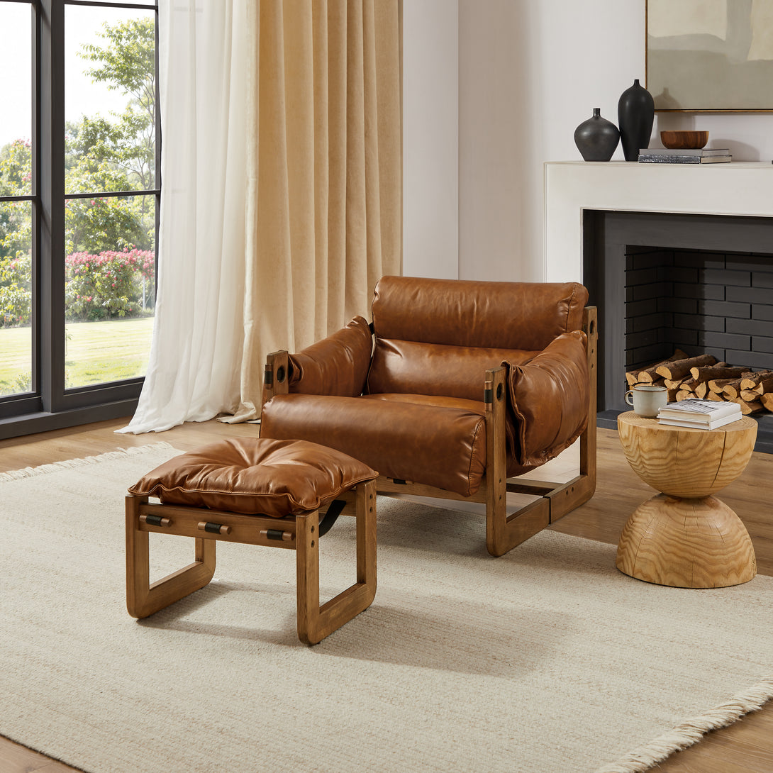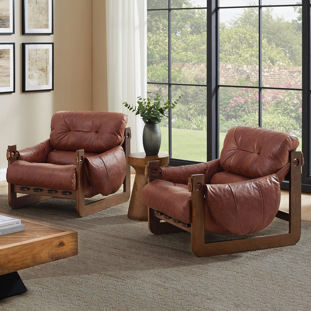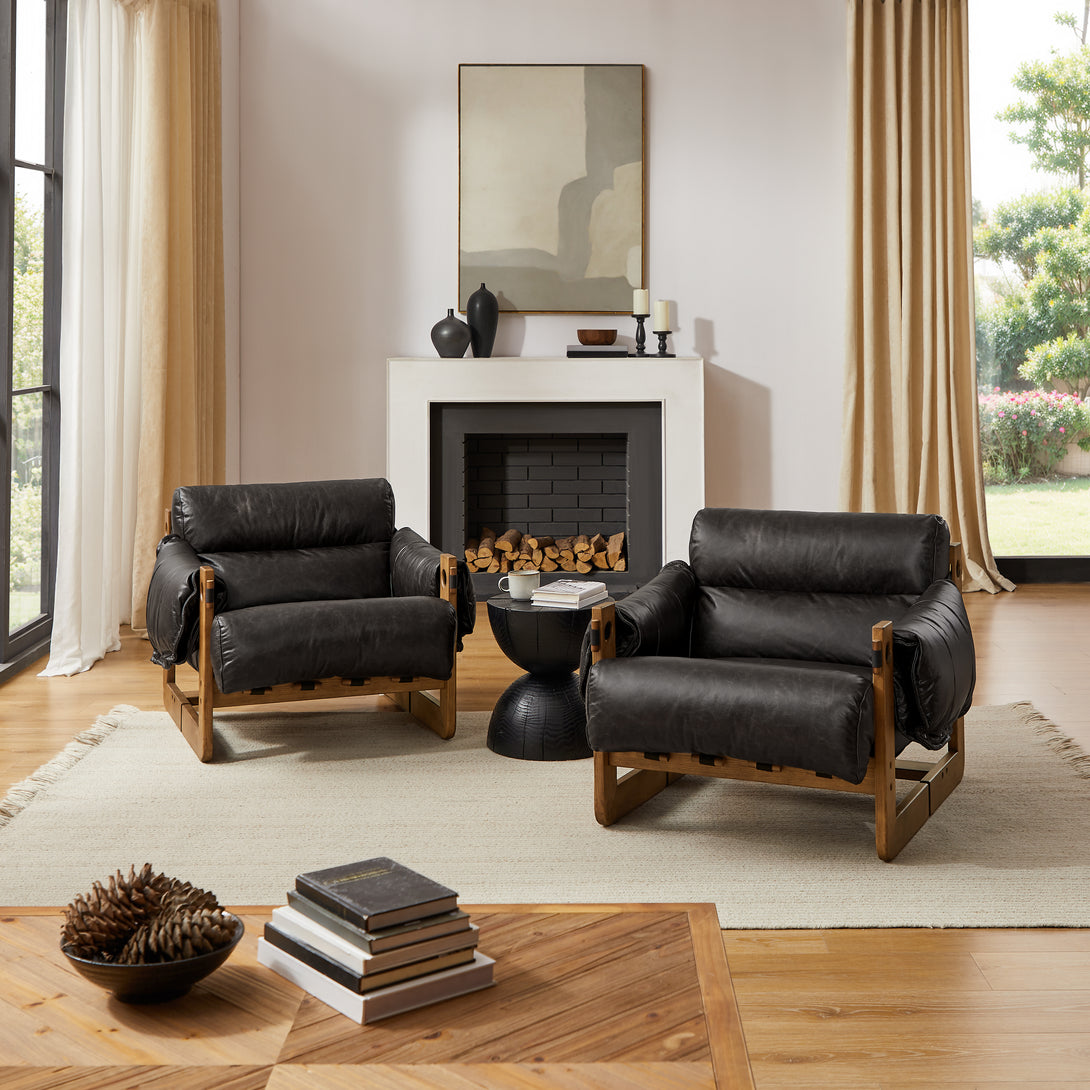 Introducing an exquisite lounge chair that combines timeless elegance with classic craftsmanship! This low-profile accent armchair is upholstered with top-grain leather, which is both breathable and delicate, and features a solid wood frame for strong support & longevity.
