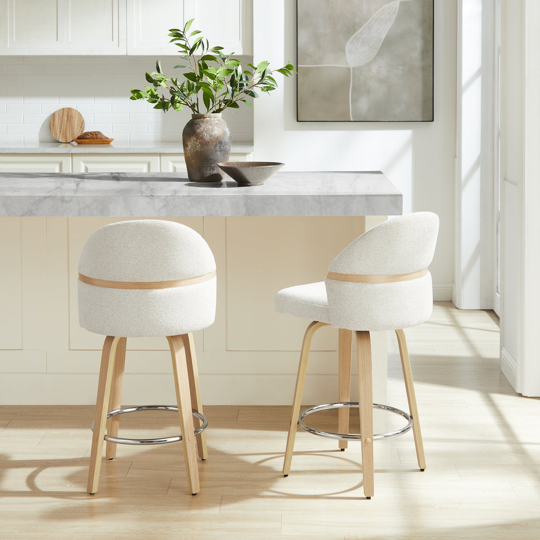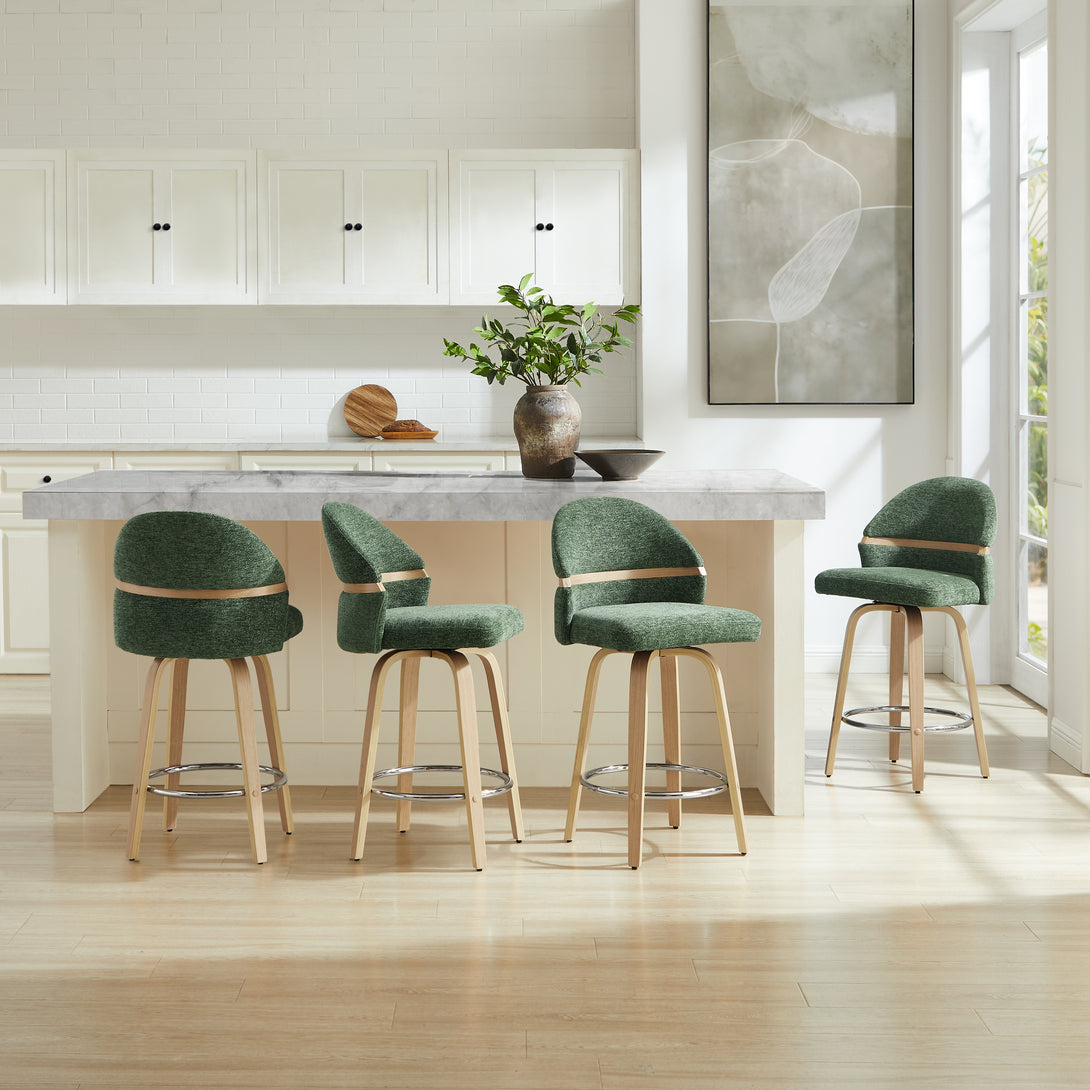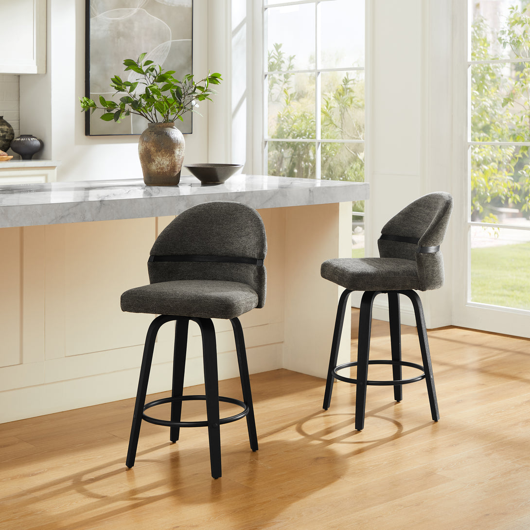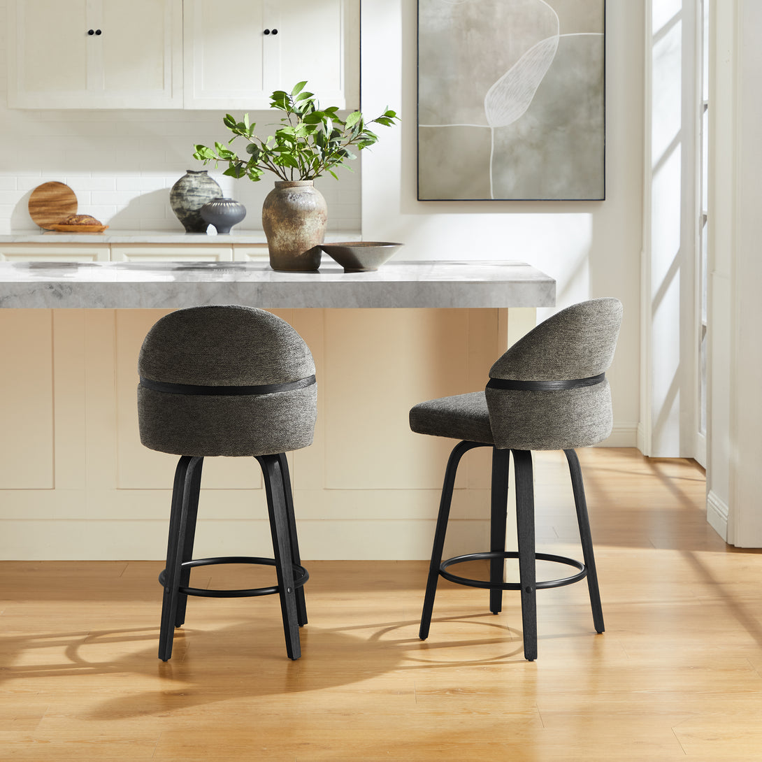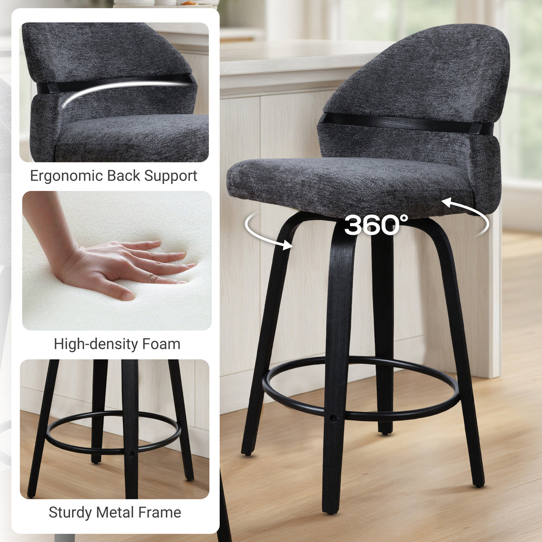 Comfort: Swivel bar stools featuring a gracefully curved backrest & rounded seat design, soft Chenille Fabric/faux leather wrap, and foam-padded cushion help provide coziness as well as support!