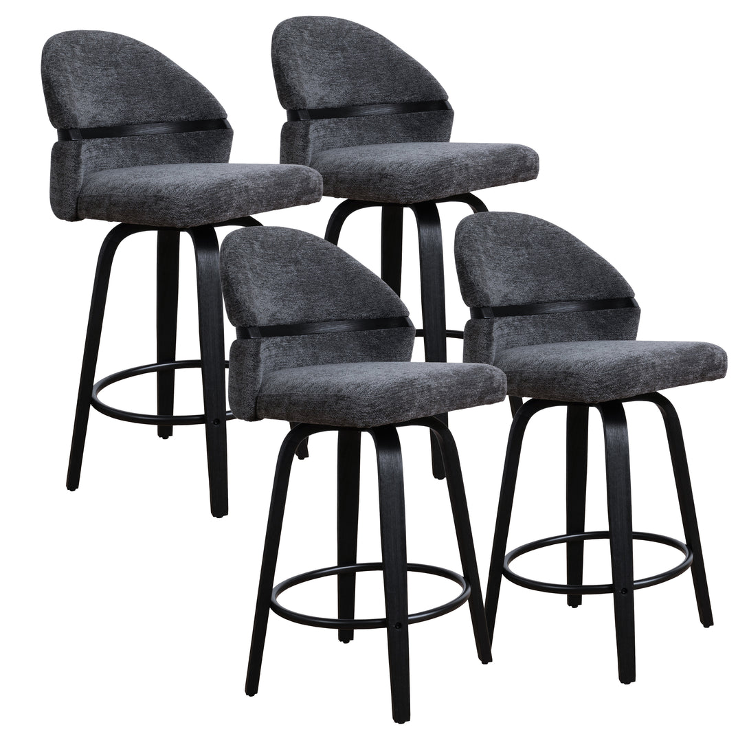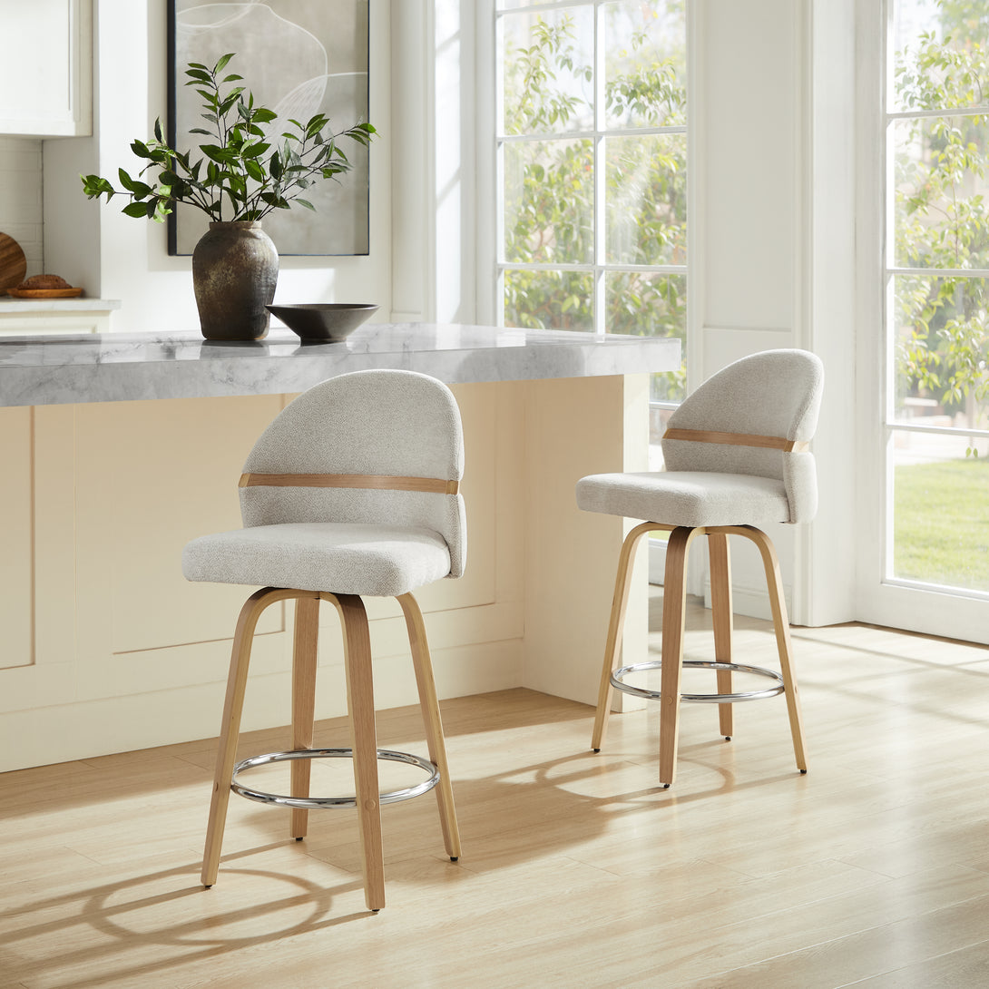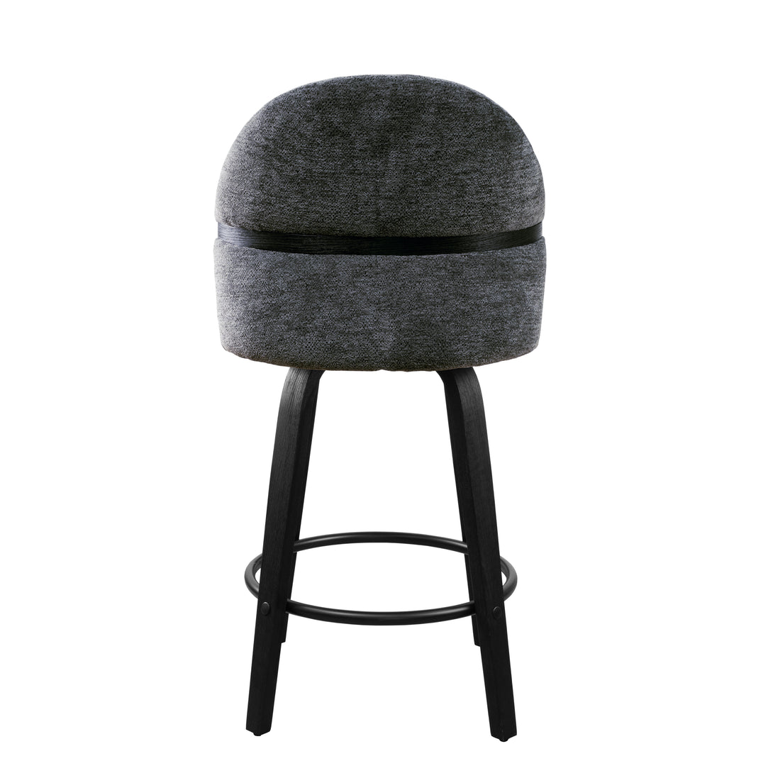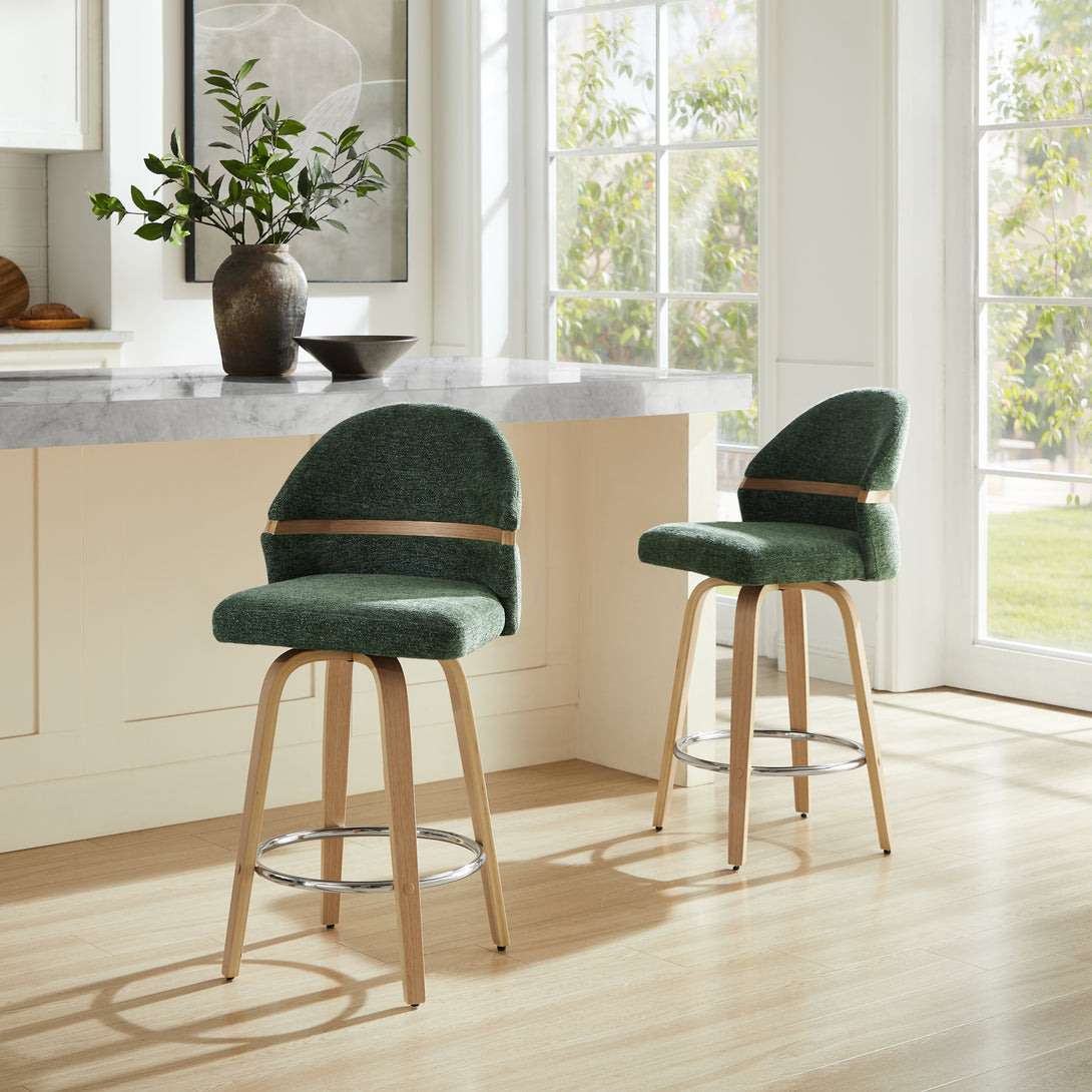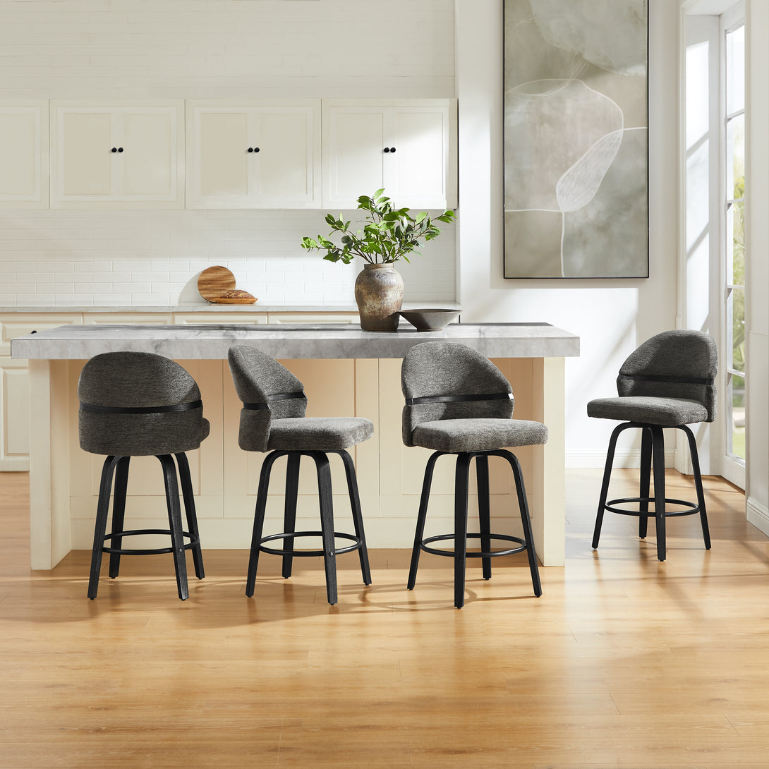 Comfort: Swivel bar stools featuring a gracefully curved backrest & rounded seat design, soft Chenille Fabric/faux leather wrap, and foam-padded cushion help provide coziness as well as support!