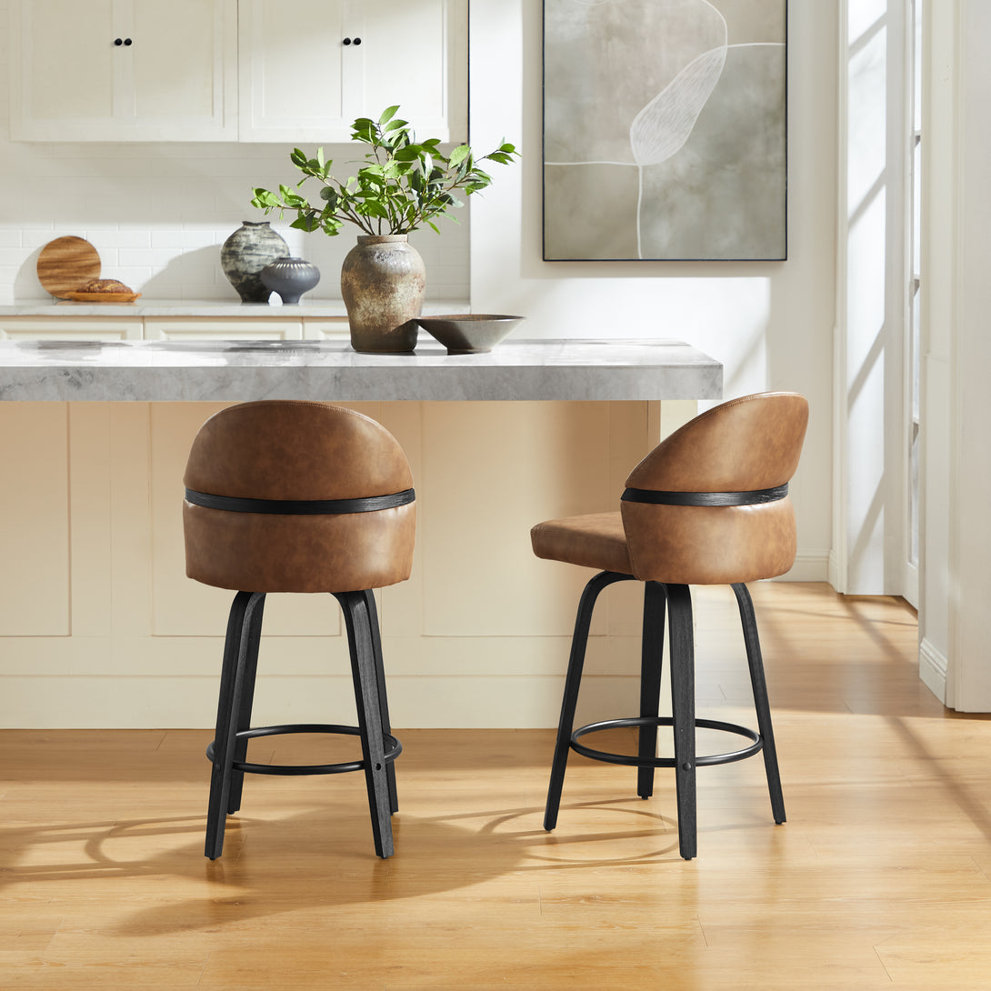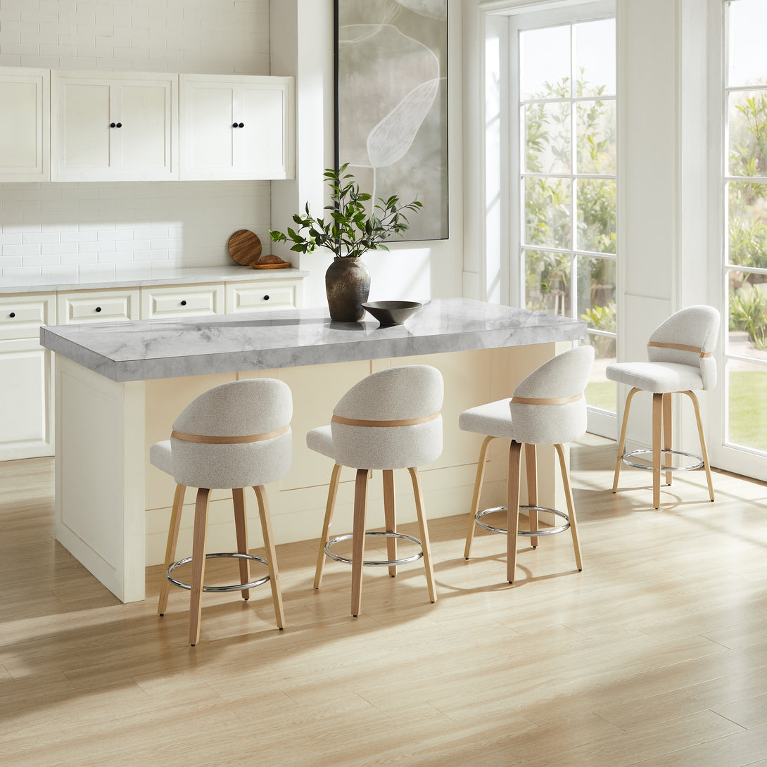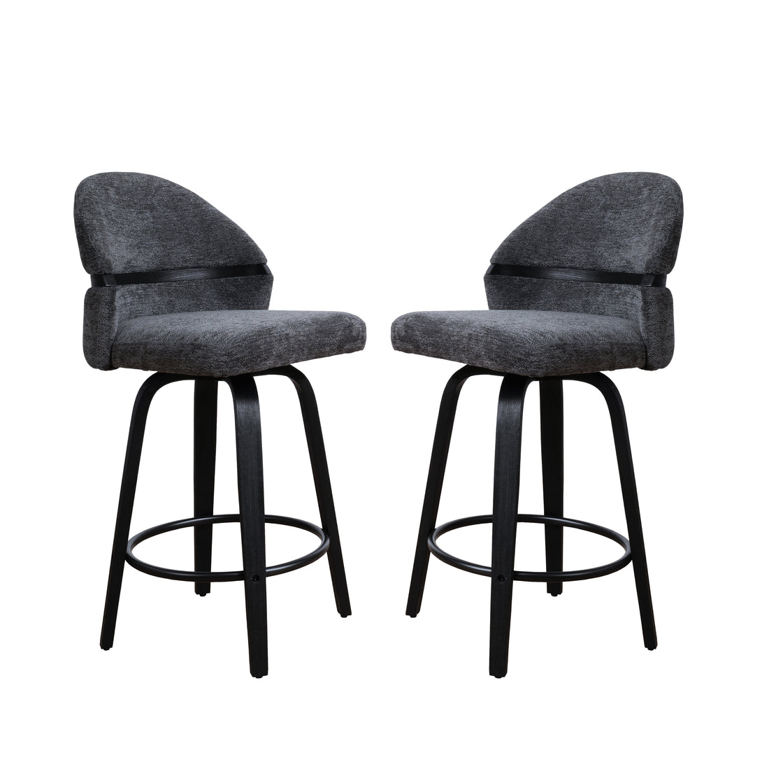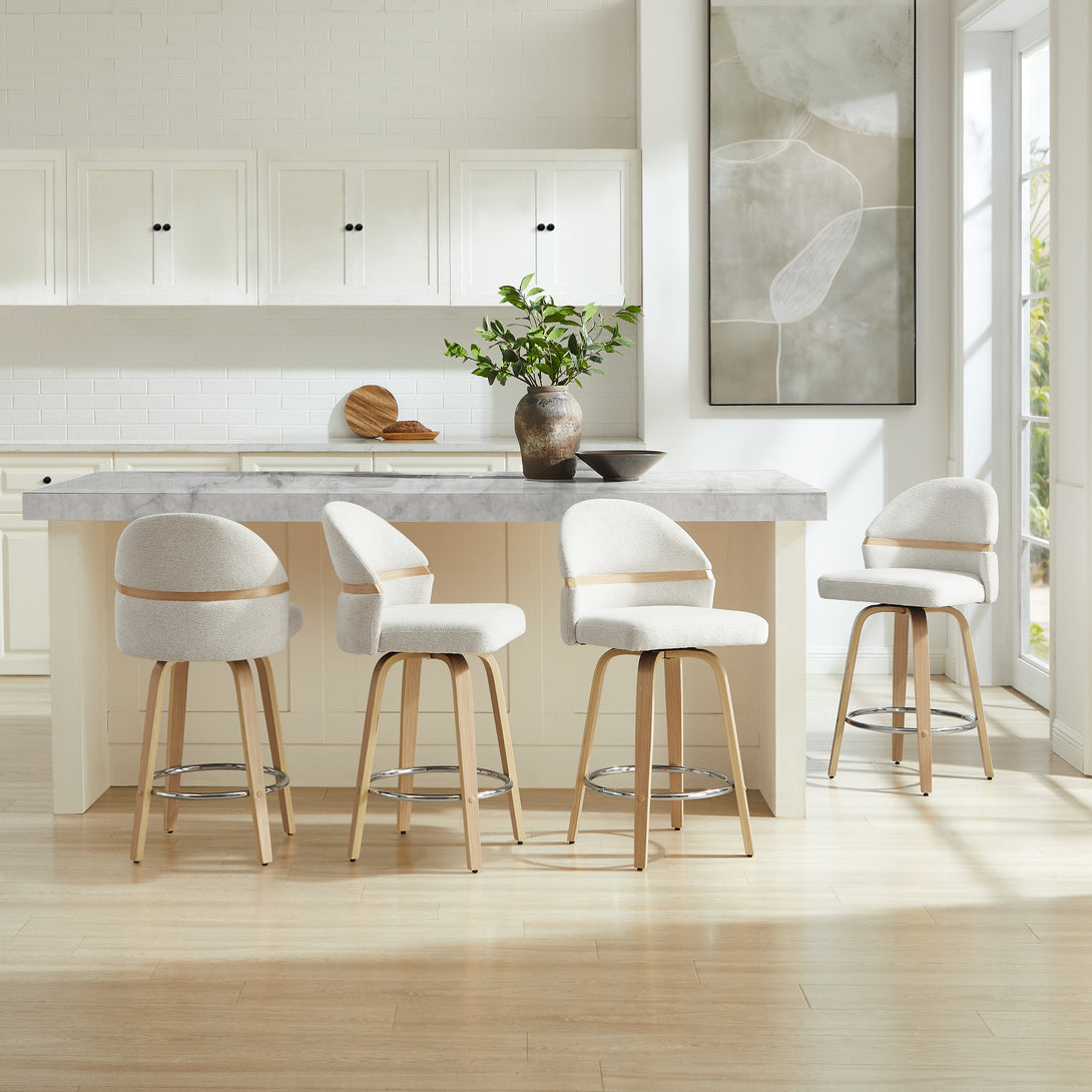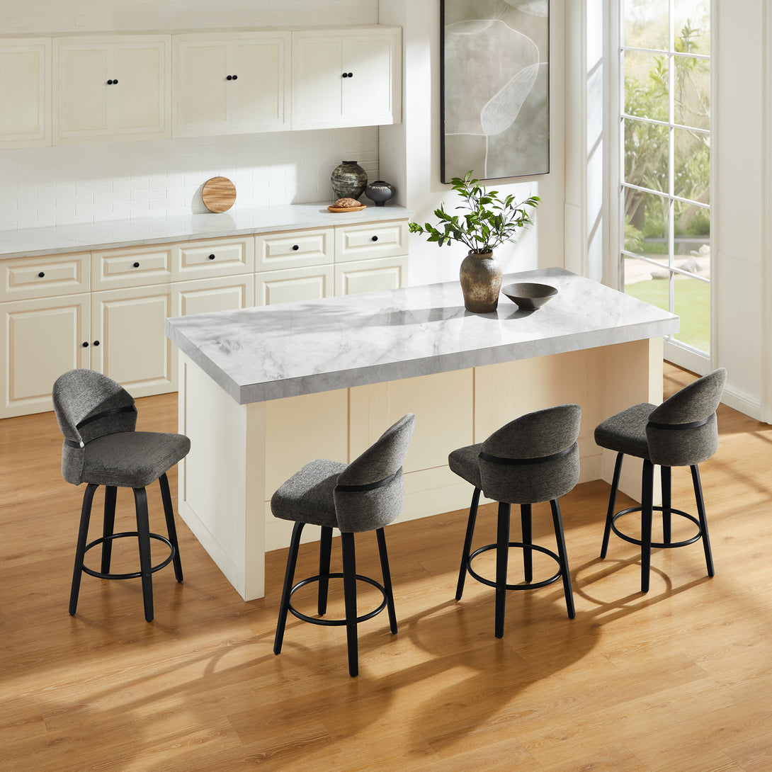 Comfort: Swivel bar stools featuring a gracefully curved backrest & rounded seat design, soft Chenille Fabric/faux leather wrap, and foam-padded cushion help provide coziness as well as support!