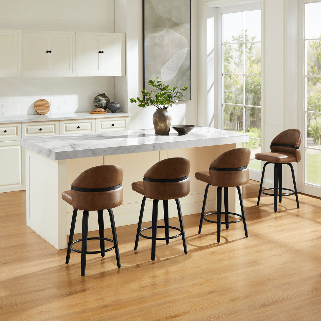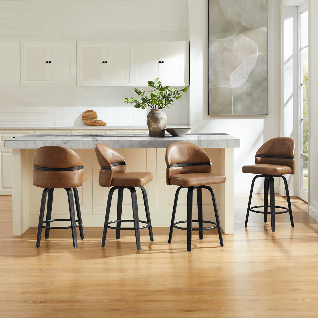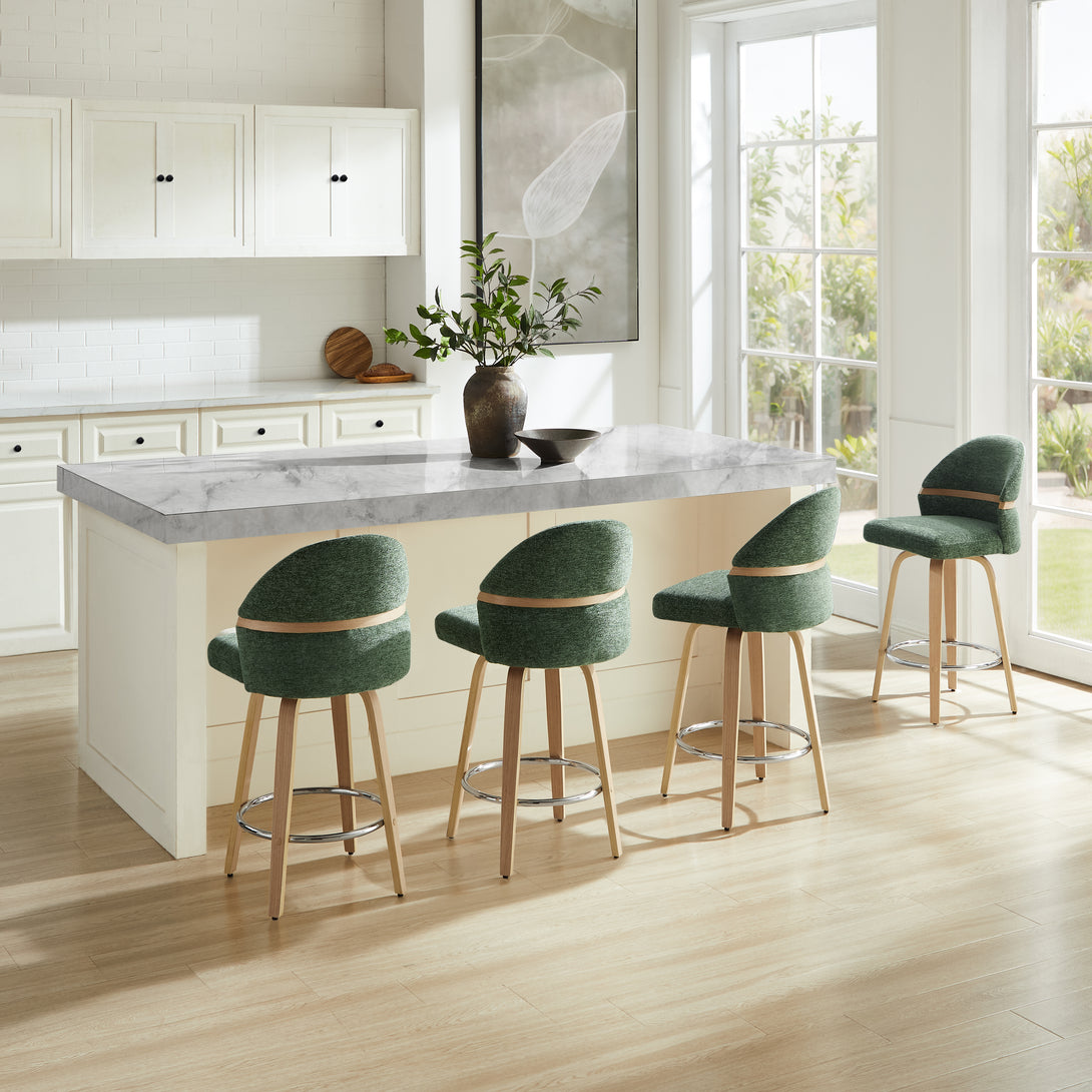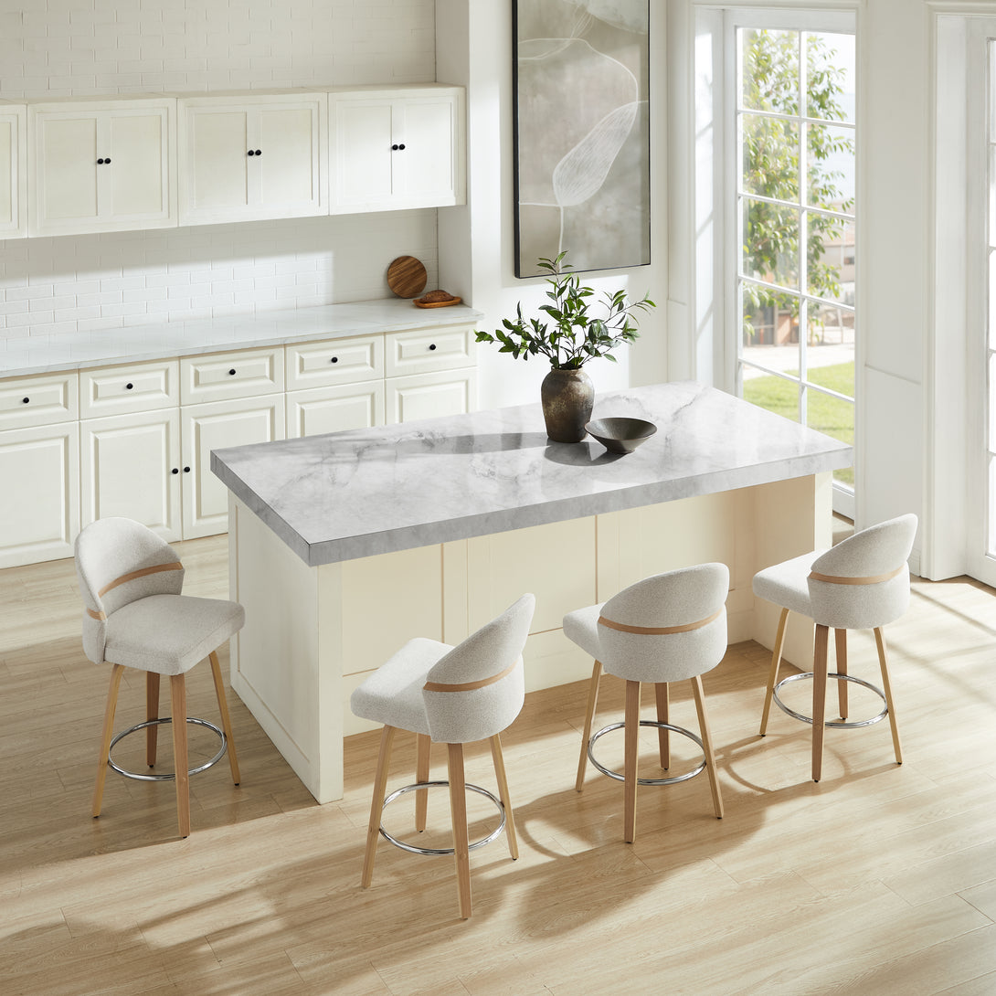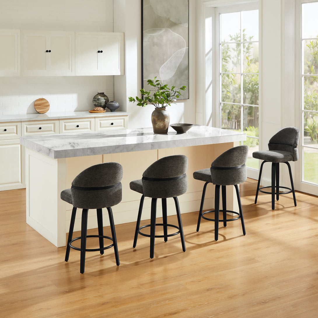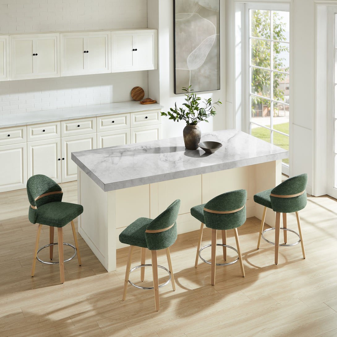 Comfort: Swivel bar stools featuring a gracefully curved backrest & rounded seat design, soft Chenille Fabric/faux leather wrap, and foam-padded cushion help provide coziness as well as support!