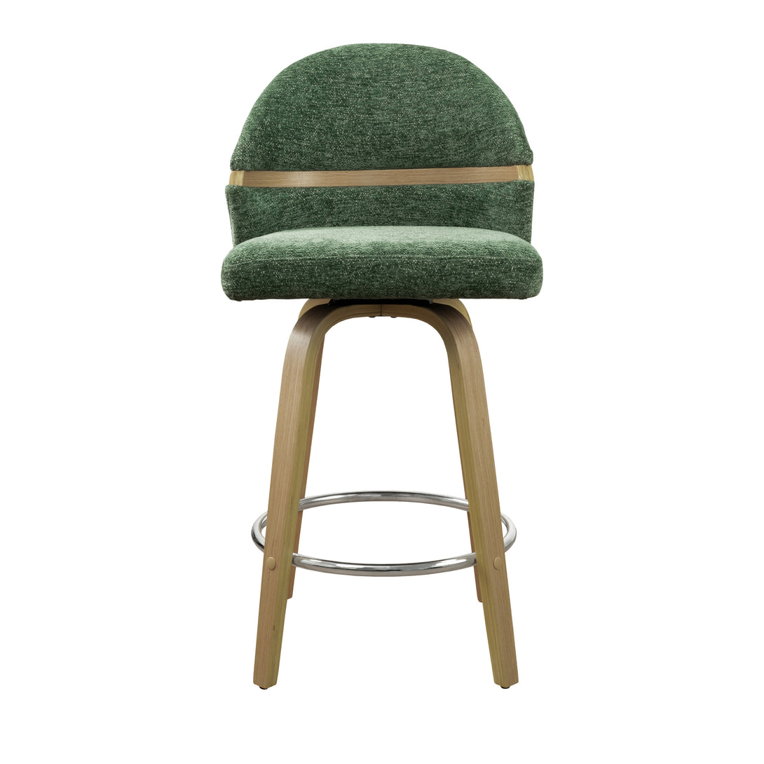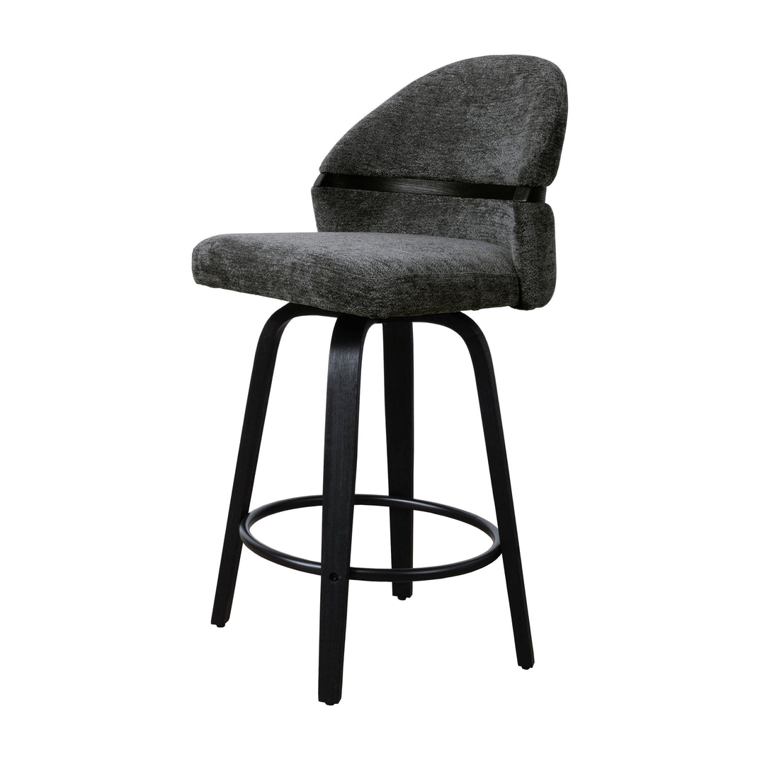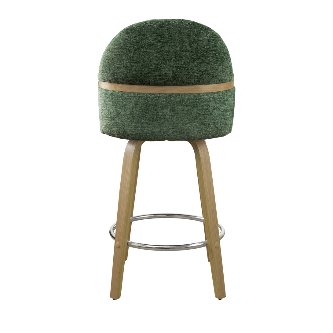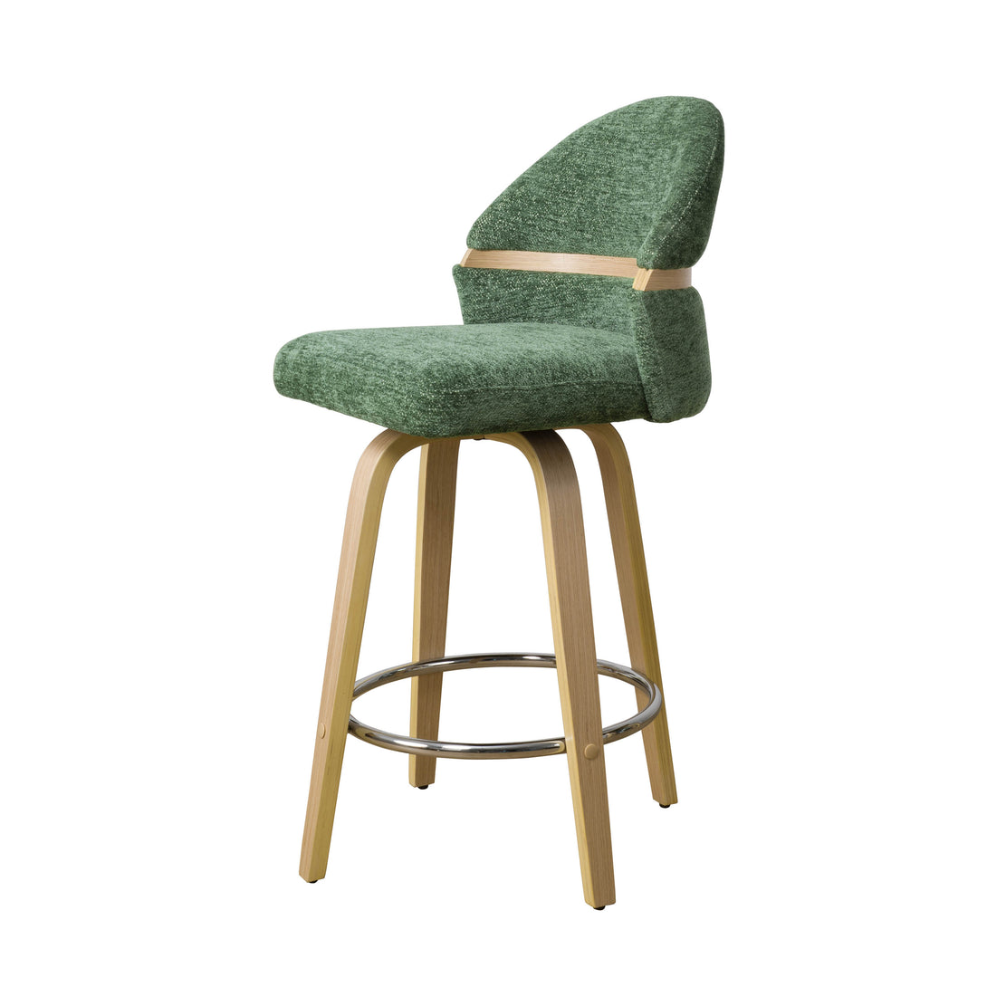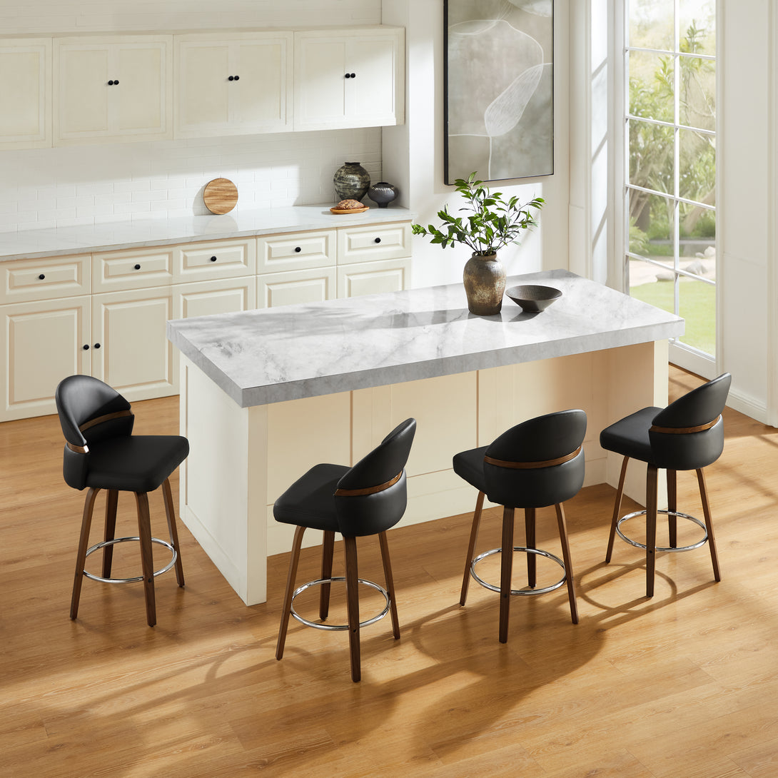 Comfort: Swivel bar stools featuring a gracefully curved backrest & rounded seat design, soft Chenille Fabric/faux leather wrap, and foam-padded cushion help provide coziness as well as support!