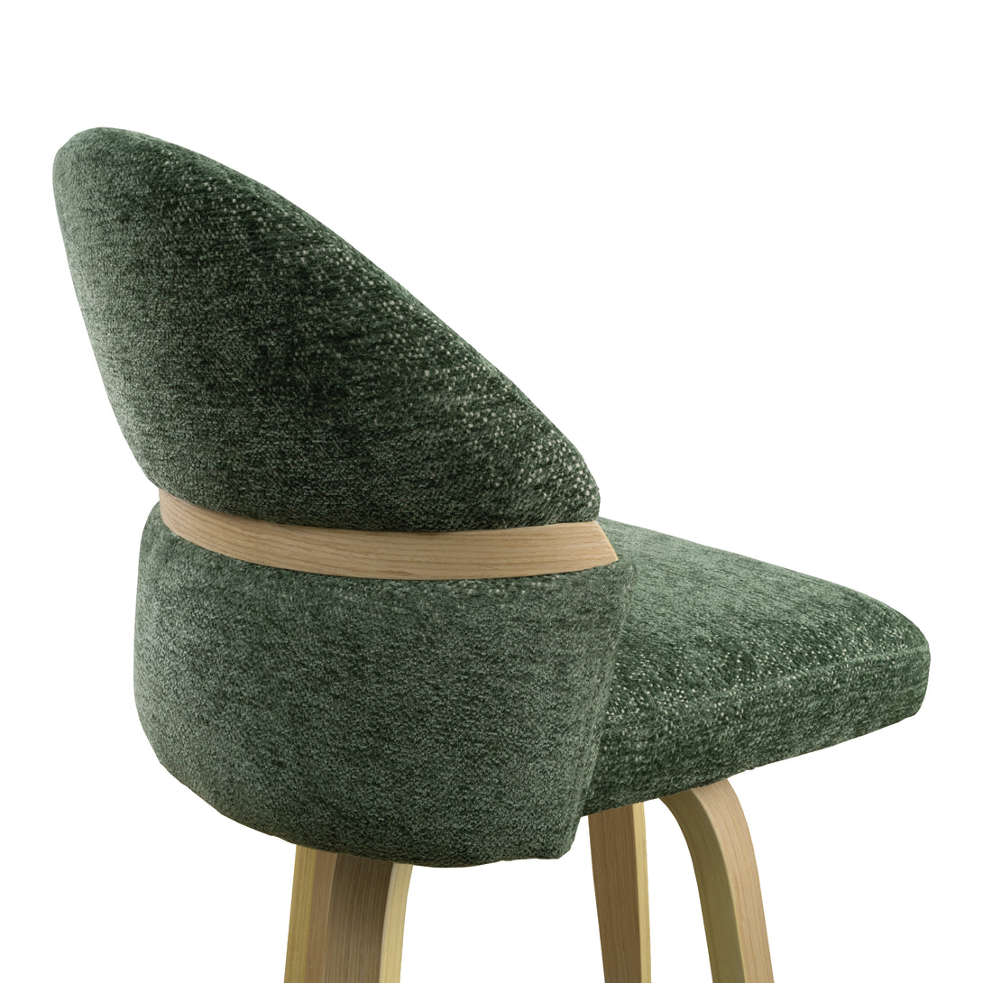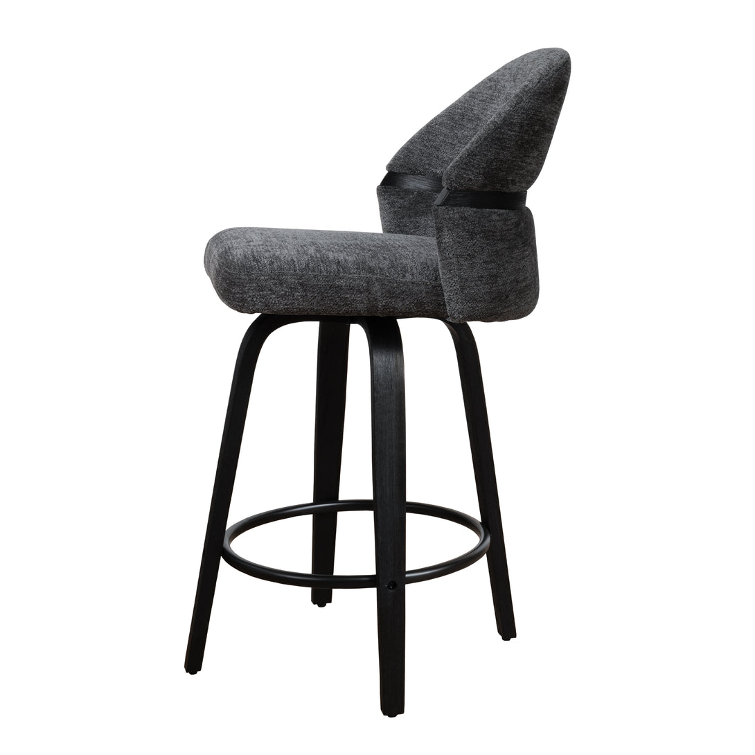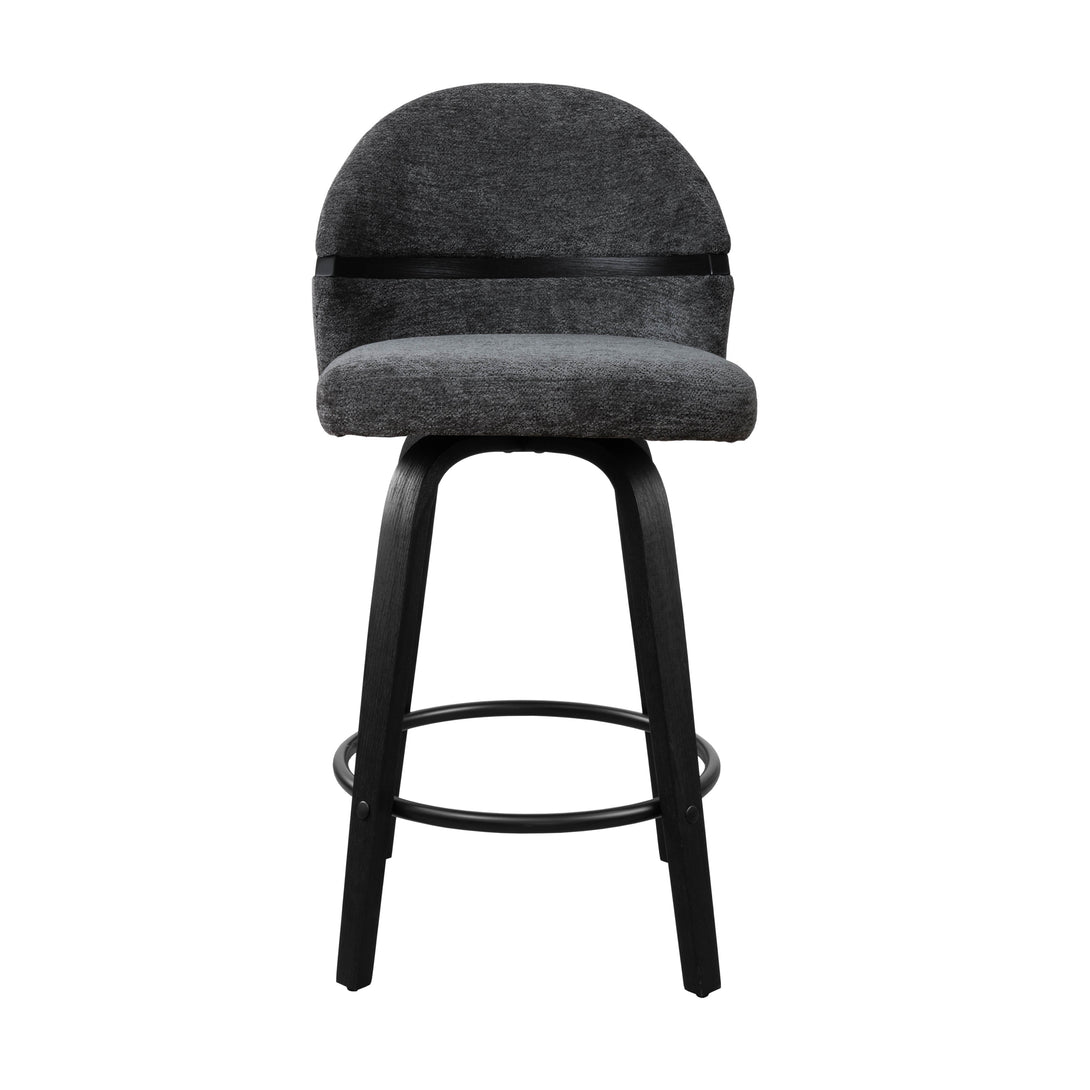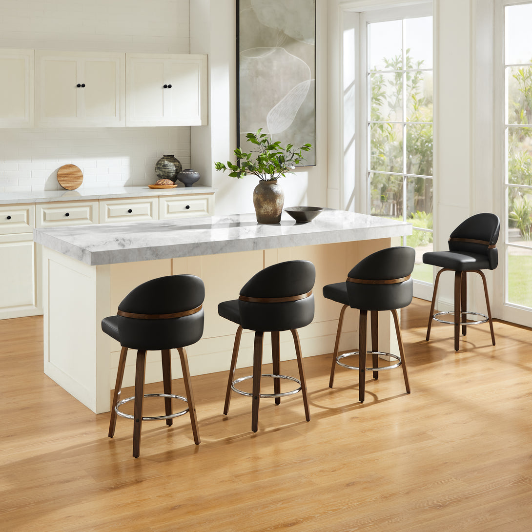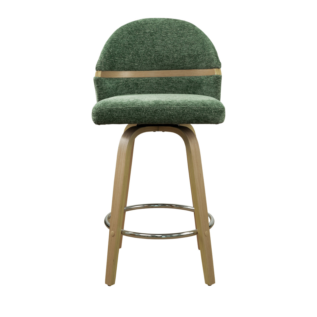 Comfort: Swivel bar stools featuring a gracefully curved backrest & rounded seat design, soft Chenille Fabric/faux leather wrap, and foam-padded cushion help provide coziness as well as support!