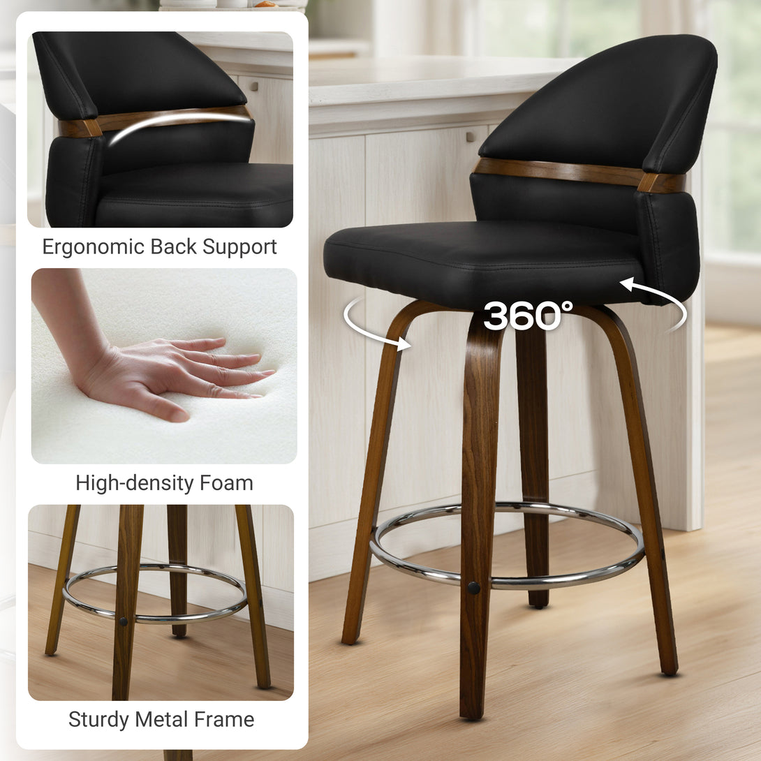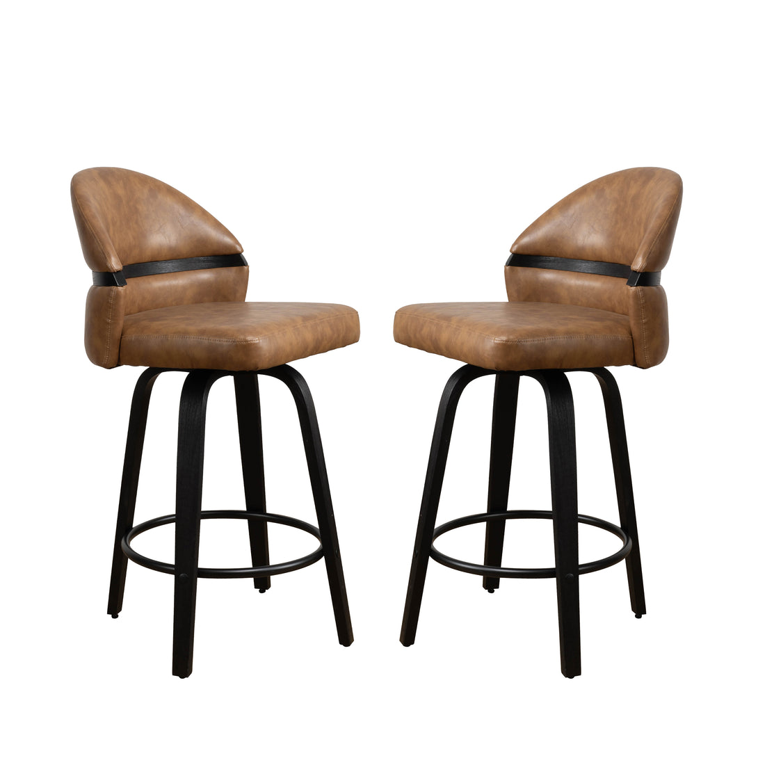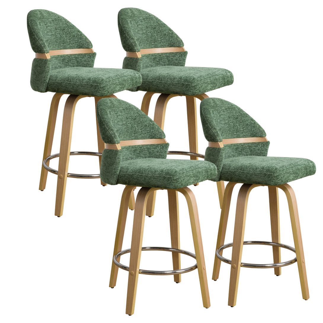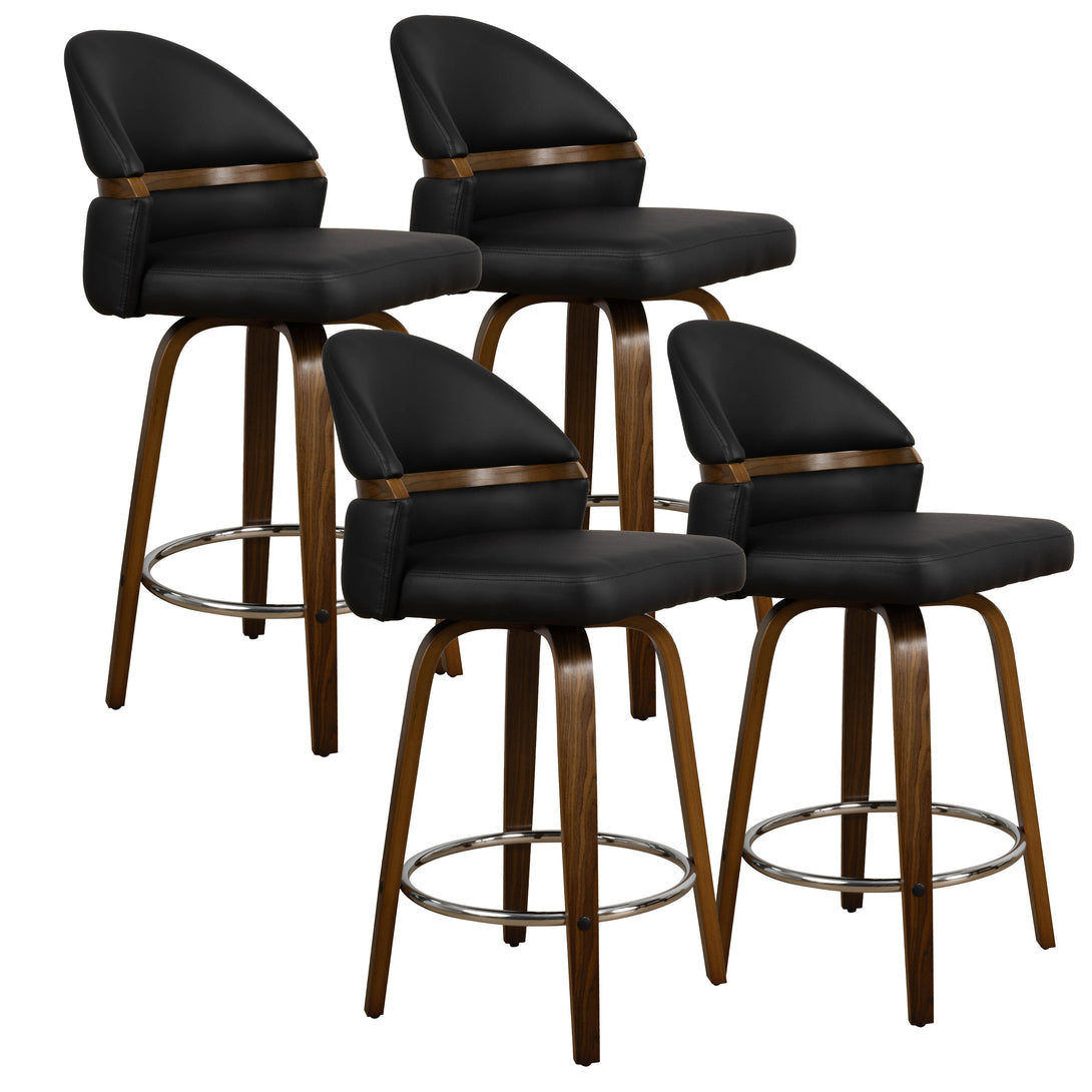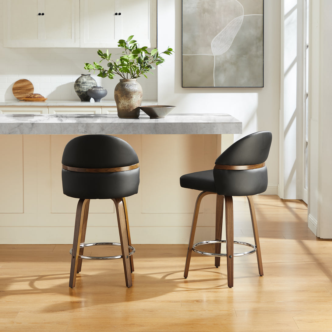 Art Poplar Bentwood Swivel Bar Stool Set, Metal Footrest Ring & Arched Backrest - Midcentury Modern Design