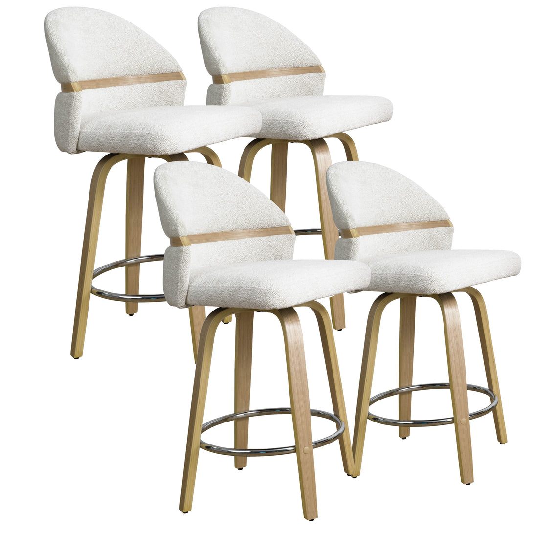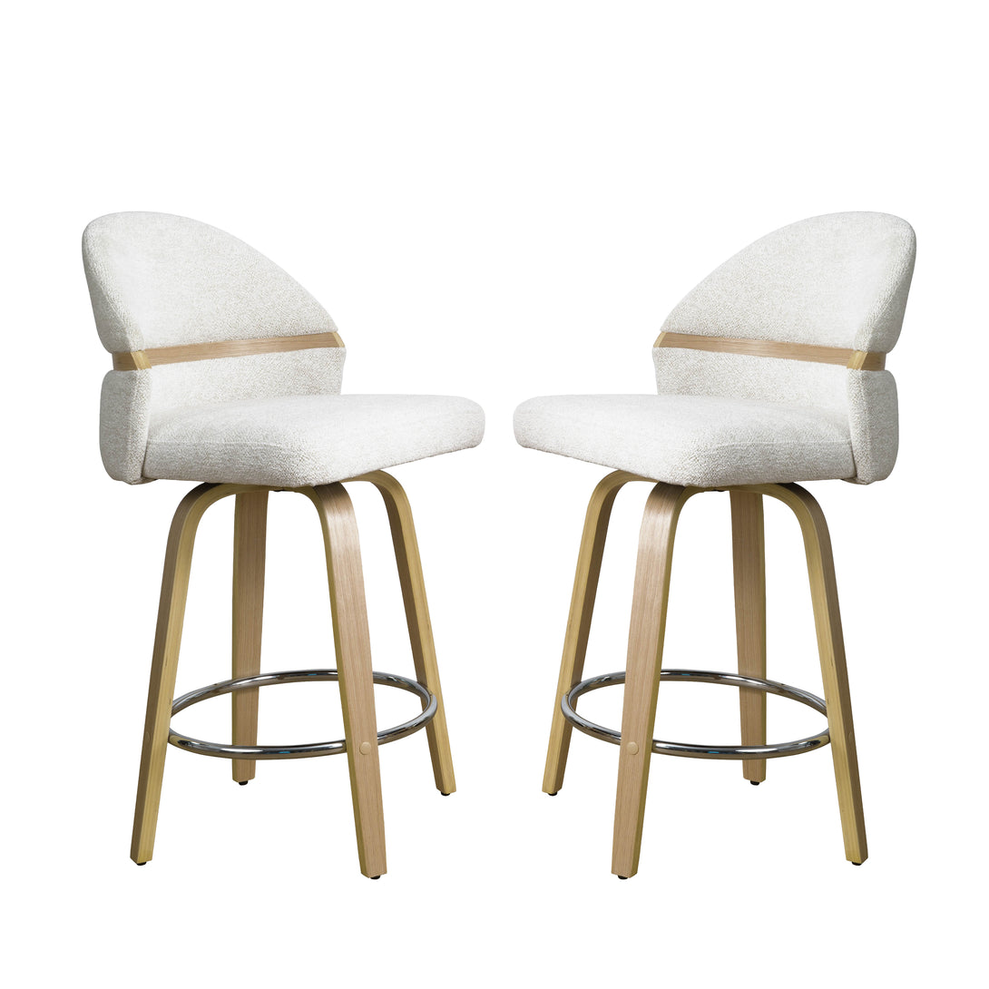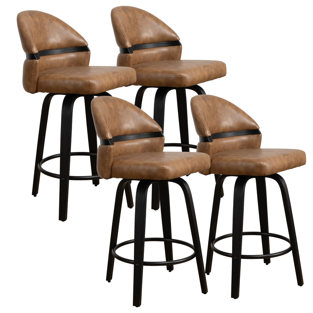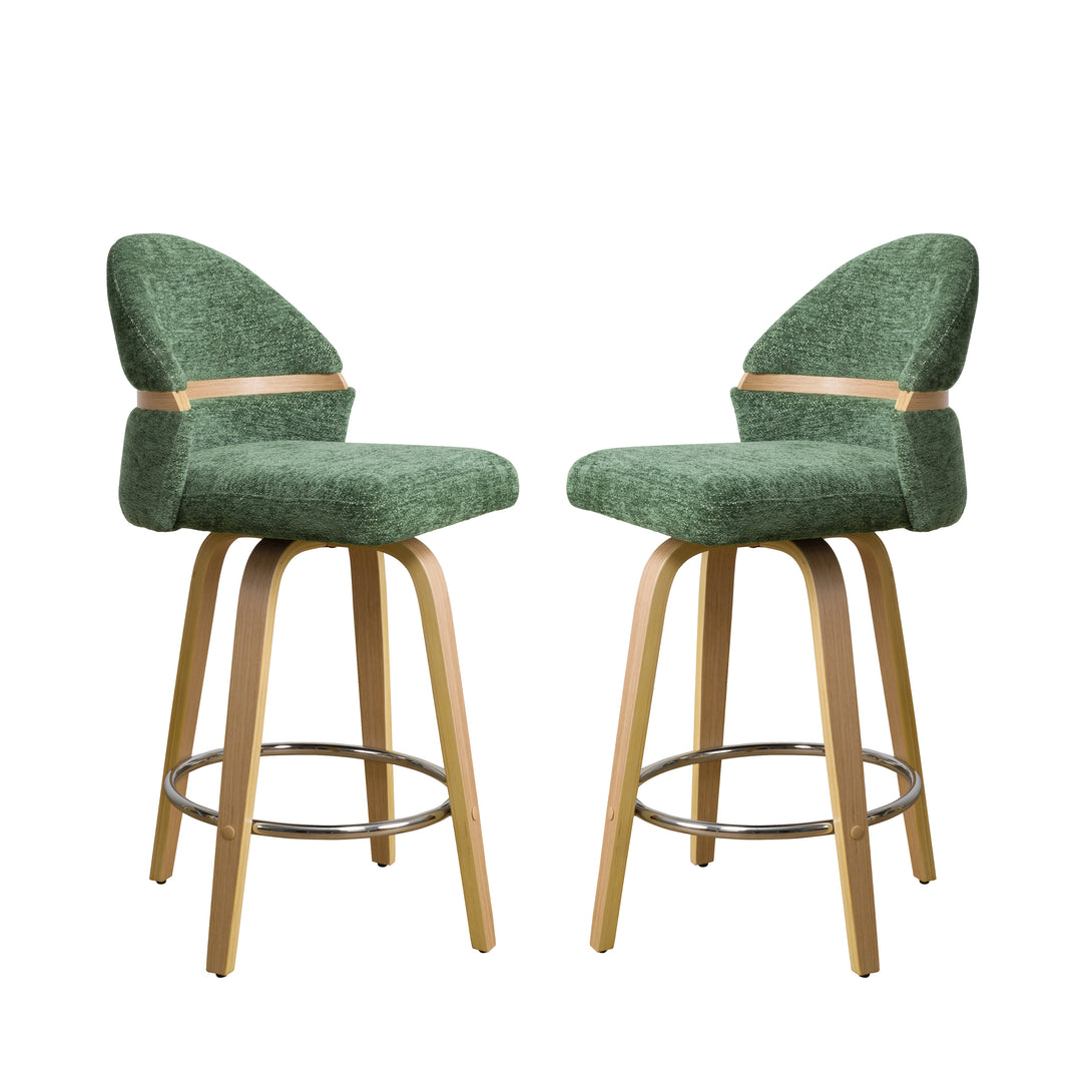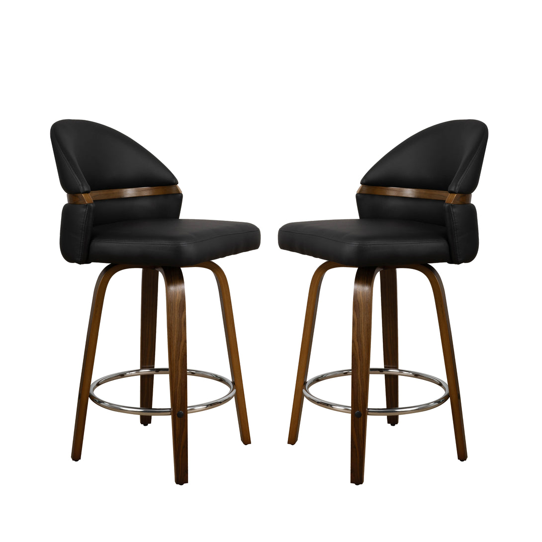 Art Poplar Bentwood Swivel Bar Stool Set, Metal Footrest Ring & Arched Backrest - Midcentury Modern Design