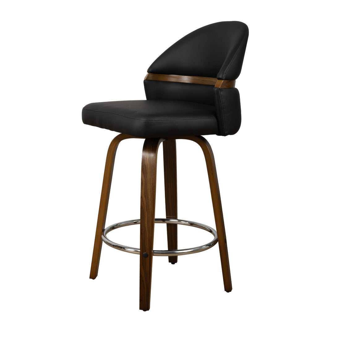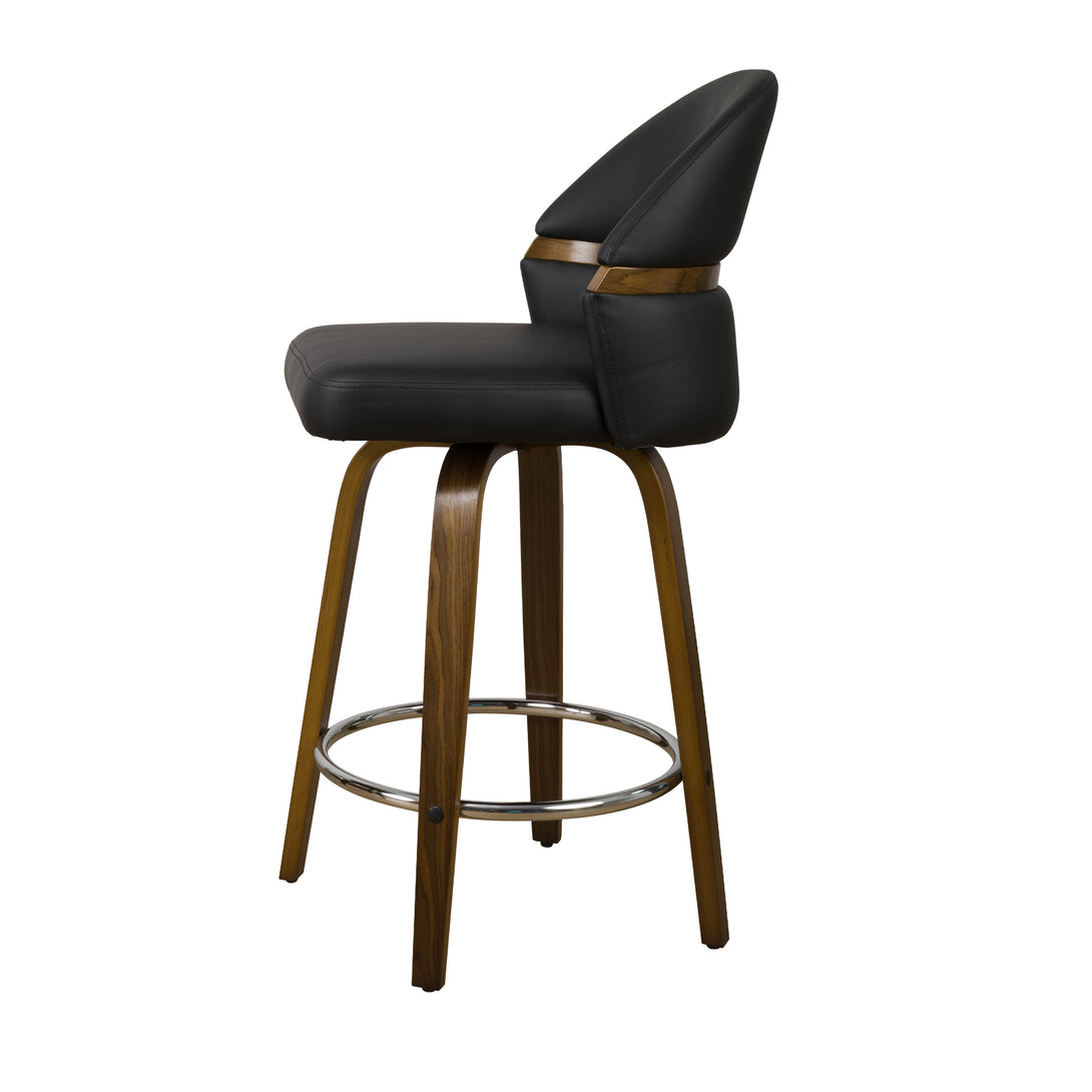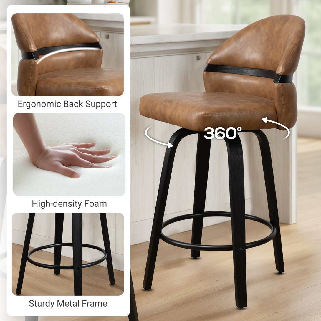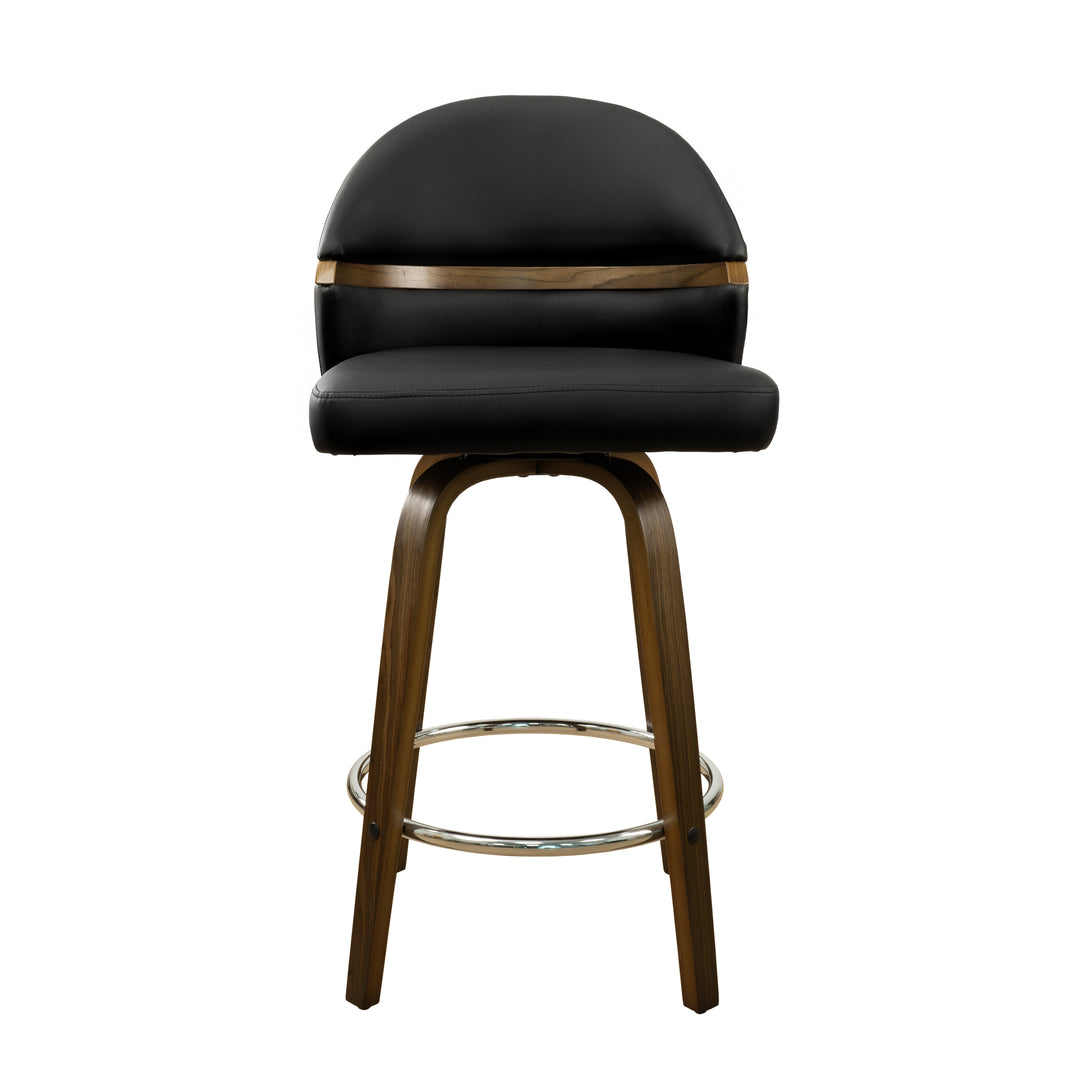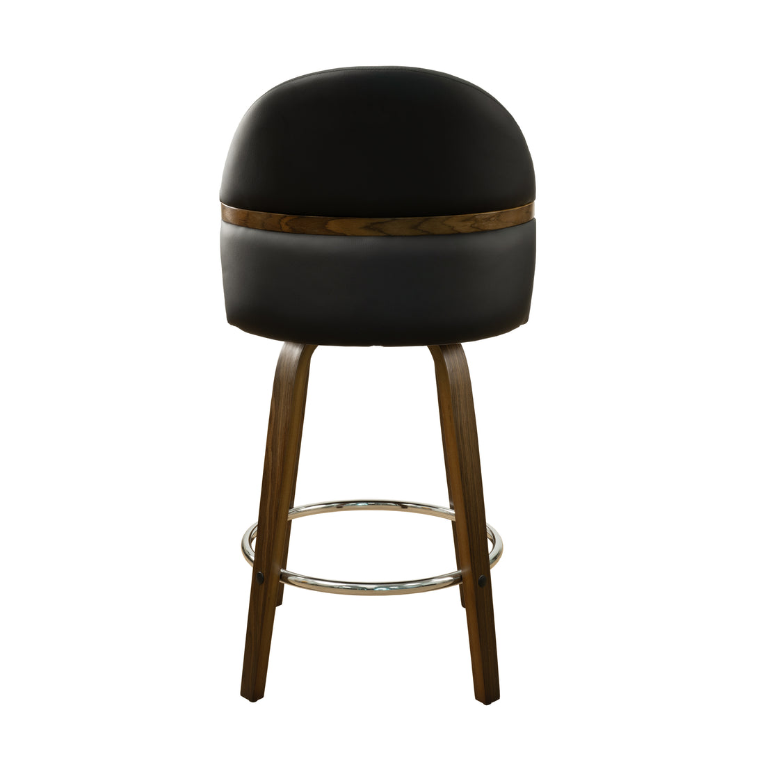 Art Poplar Bentwood Swivel Bar Stool Set, Metal Footrest Ring & Arched Backrest - Midcentury Modern Design