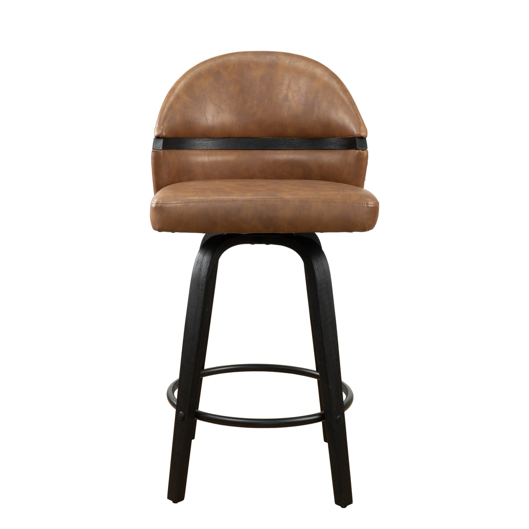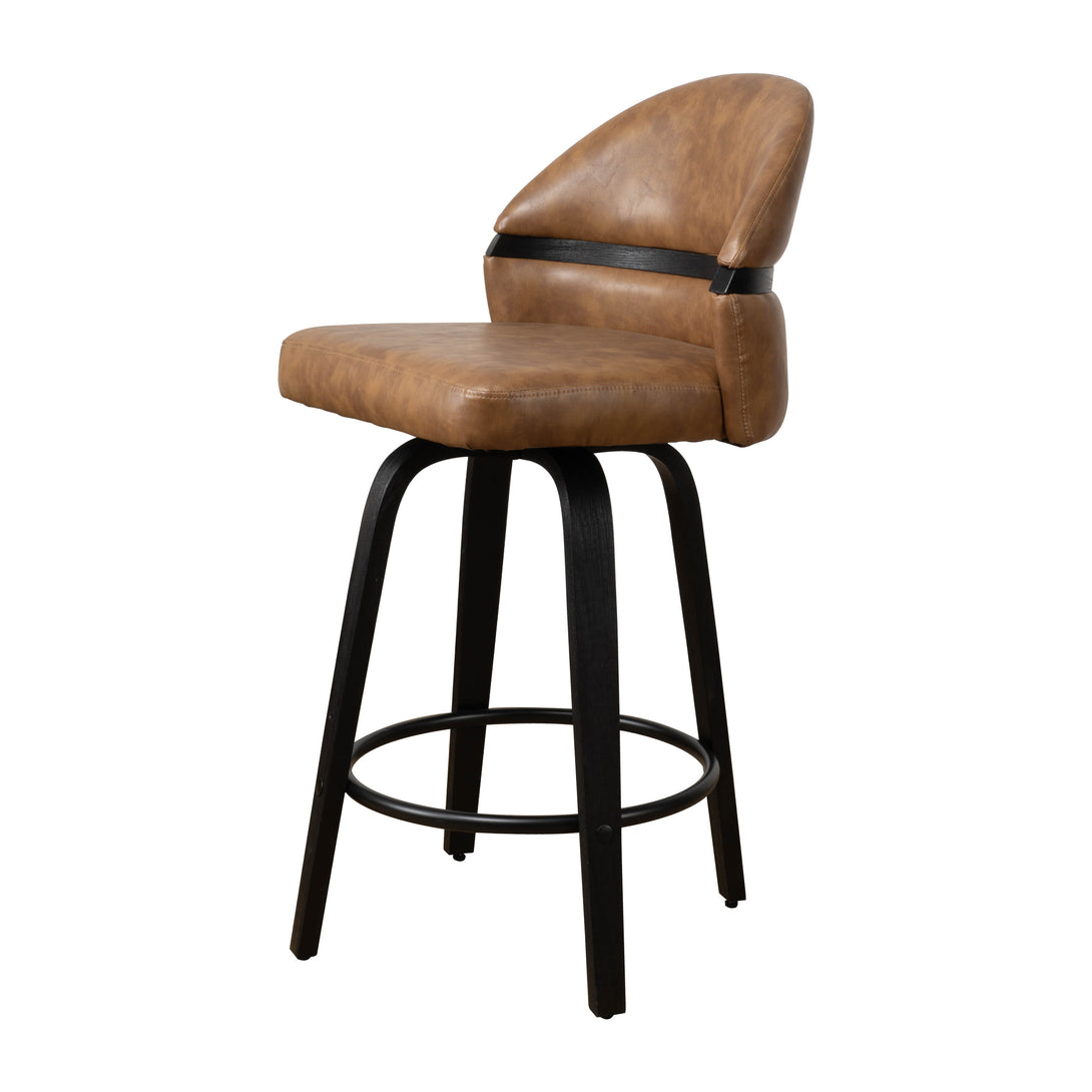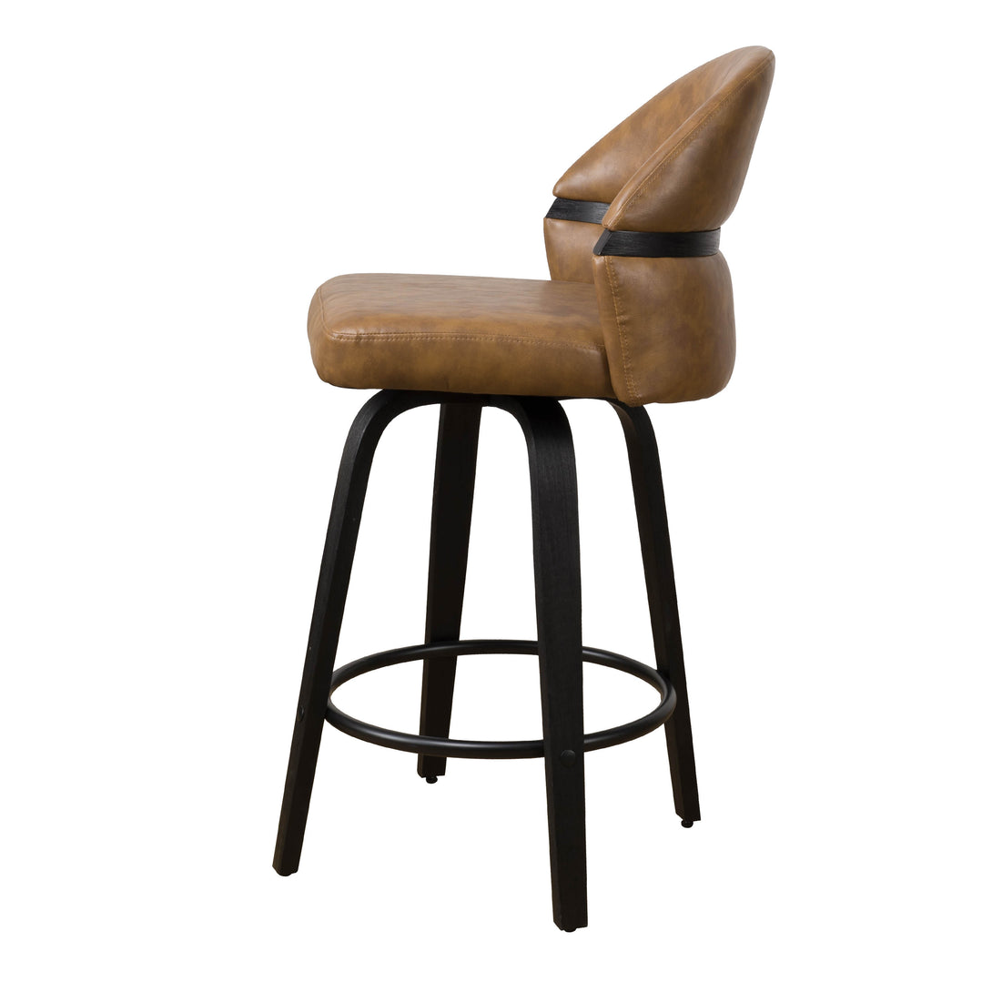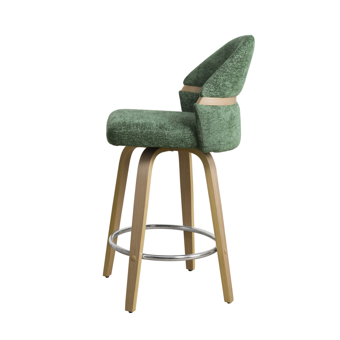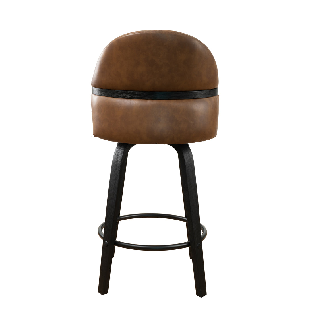 Art Poplar Bentwood Swivel Bar Stool Set, Metal Footrest Ring & Arched Backrest - Midcentury Modern Design