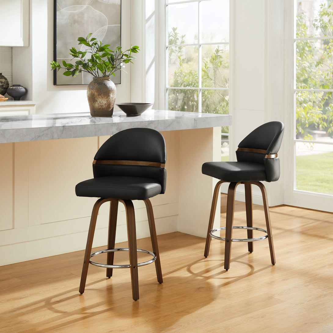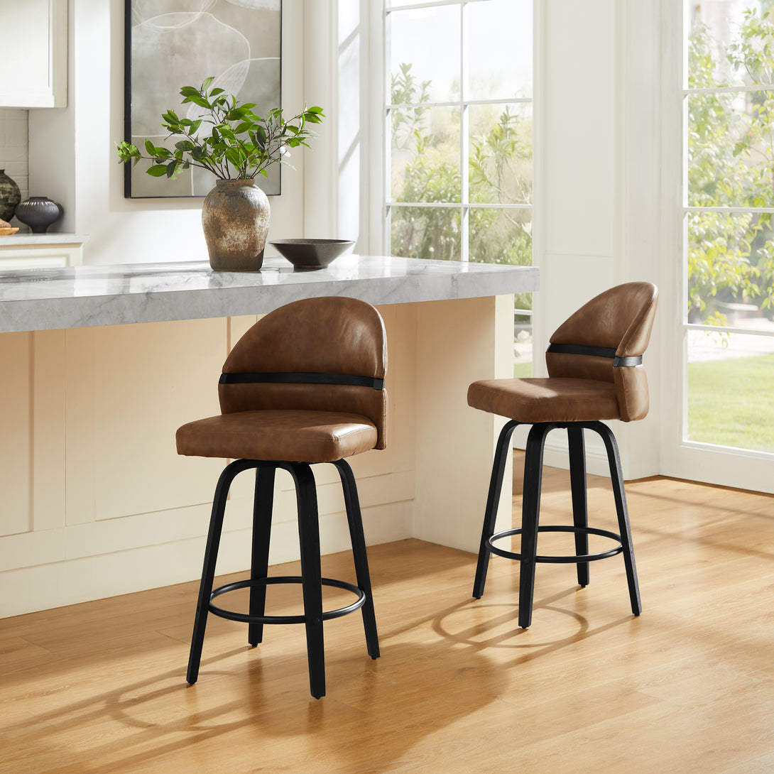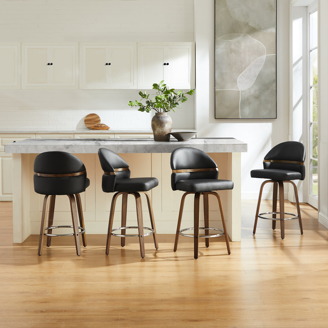Introducing the new Art Leon Poplar Bentwood Swivel Bar Stool Set, where Mid-Century Modern design meets contemporary comfort! This exquisite set is crafted to elevate your kitchen island or bar area with its striking aesthetic and functional features.