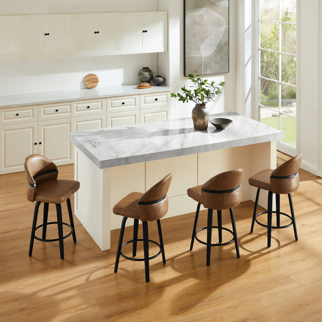 Arched-Shaped Backrest: The bar stools' wraparound backrest design conforms to the curves of its back, ensuring comfortable support! An open backrest helps keep your back ventilated.