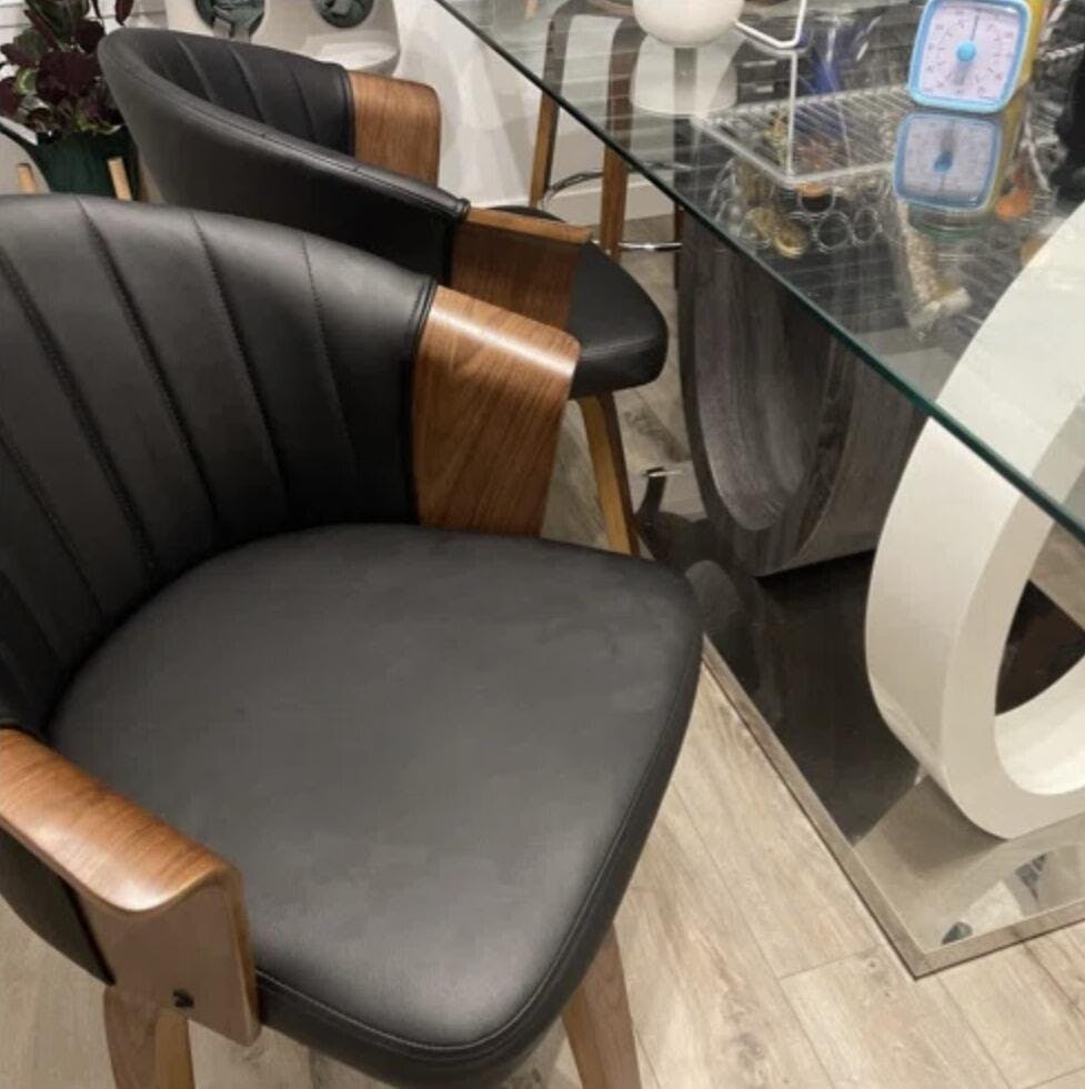 Infuse your workspace with the sophistication of this black/ brown leather desk chair, featuring elegant wood accents, supportive channel stitching, and a sturdy, stylish frame—perfect for elevating your office's comfort and aesthetic.