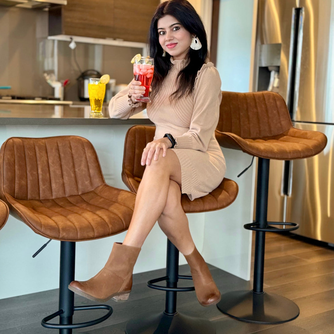 Enjoy customizable comfort with our gas lift handle, effortlessly adjusting the bar chair's height from 22 to 30 inches to fit your needs. The 360° swivel function brings dynamic interaction, making conversations with loved ones a breeze.