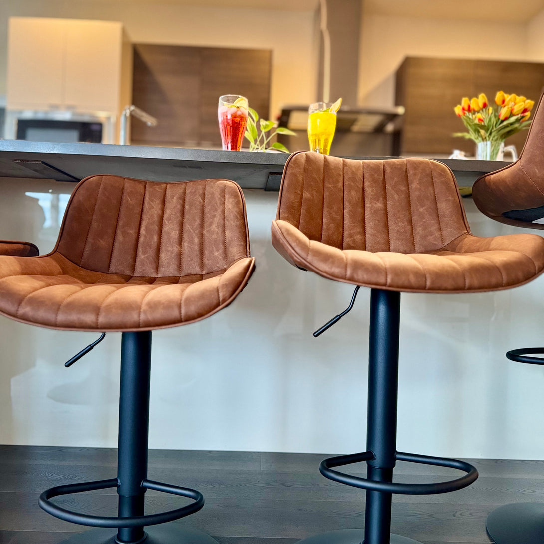 Art Leon Swivel Bar Stool with its sophisticated faux-leather design and swivel capabilities, uniquely blends functionality with an aesthetic appeal. Proving to be the beloved favorite and hot-selling is both style and comfort that elevates any bar or dining space. It is sure to add an elegant touch to your decor by adding the bar stool to your space today!