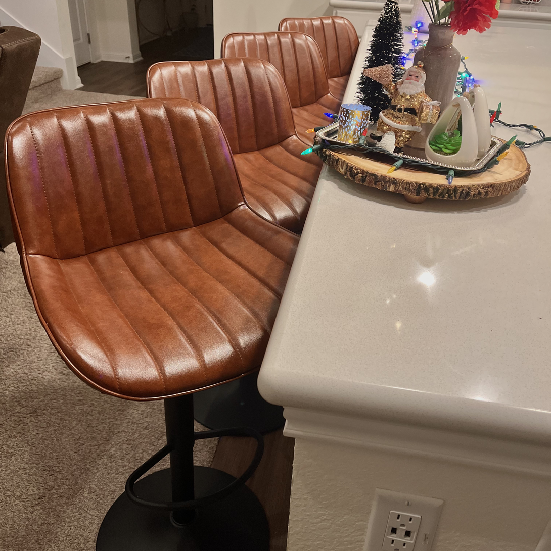 It comes with a gas lift handle just right under the seat to adjust the height to your preference. You can adjust the bar chair's height from 22 inches to 30 inches with the handle to suit your needs or counter, while the 360° swivel function makes it easy to chat with family or friends.